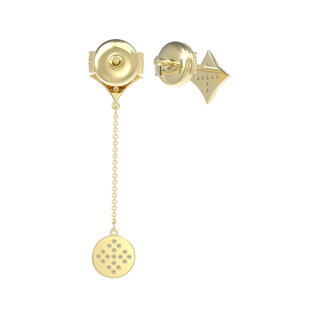 Каждая серьга инкрустирована белыми бриллиантами круглой огранки. Всего в изделии использовано 35 вставок, которые создают завораживающую игру света при каждом вашем движении. Ювелиры использовали классическую форму вставок, чтобы максимально раскрыть чистоту и блеск каждого бриллианта. Эти серьги сочетают в себе безупречную геометрию линий и роскошь драгоценных материалов.