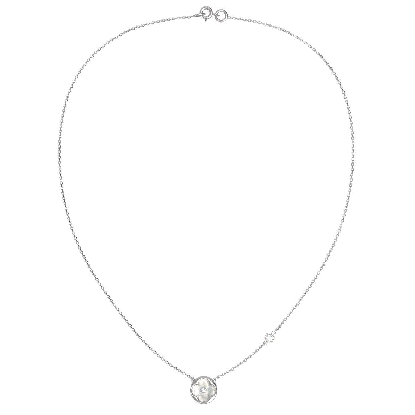 Элегантное колье из коллекции De Luxe — Амальфи — Бриллианты воплощает в себе утонченность и безупречный стиль. Это украшение выполнено из белого золота 585 пробы, что придает изделию холодный, благородный блеск. Дизайн колье вдохновлен природной эстетикой и классическими формами: центральный элемент в виде нежного четырехлистного клевера гармонично дополнен вставками из перламутра с мягким переливом.