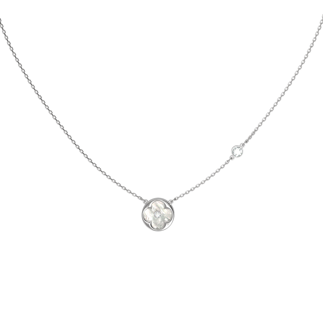 Особую выразительность украшению придают 4 вставки круглой формы: сияющие бриллианты в белом цвете подчеркивают глубину и чистоту перламутровых деталей. Тонкая ювелирная работа создает образ, который будет уместен как для повседневного ношения, так и для торжественного случая. Лаконичность линий позволяет колье органично вписаться в любой гардероб.