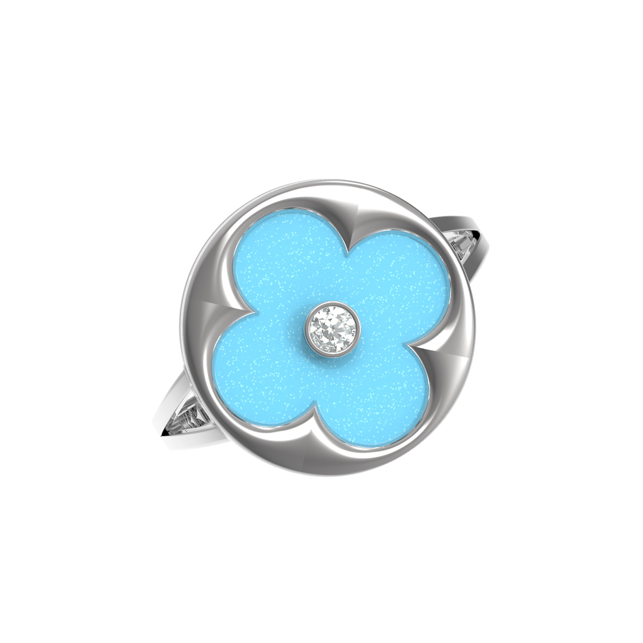 Кольцо из белого золота c бриллиантами и бирюзой