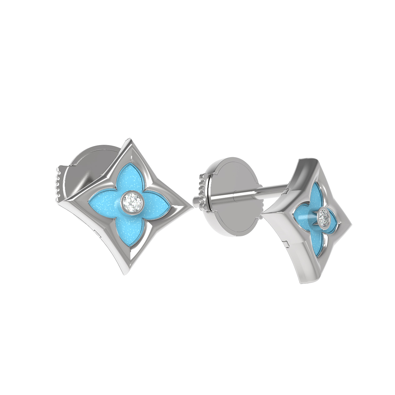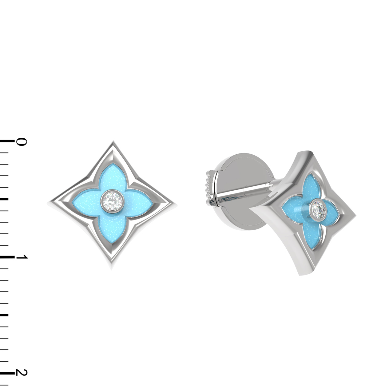 Дизайн изделия вдохновлен символикой клевера, что придает украшению особую эстетику. Центральным акцентом композиции стали вставки из яркой бирюзы бирюзового цвета, выполненные в форме ромба, которые деликатно дополняют сияющие бриллианты круглой формы. Контрастное сочетание белых бриллиантов и насыщенного цвета бирюзы создает запоминающийся образ, притягивающий восхищенные взгляды.