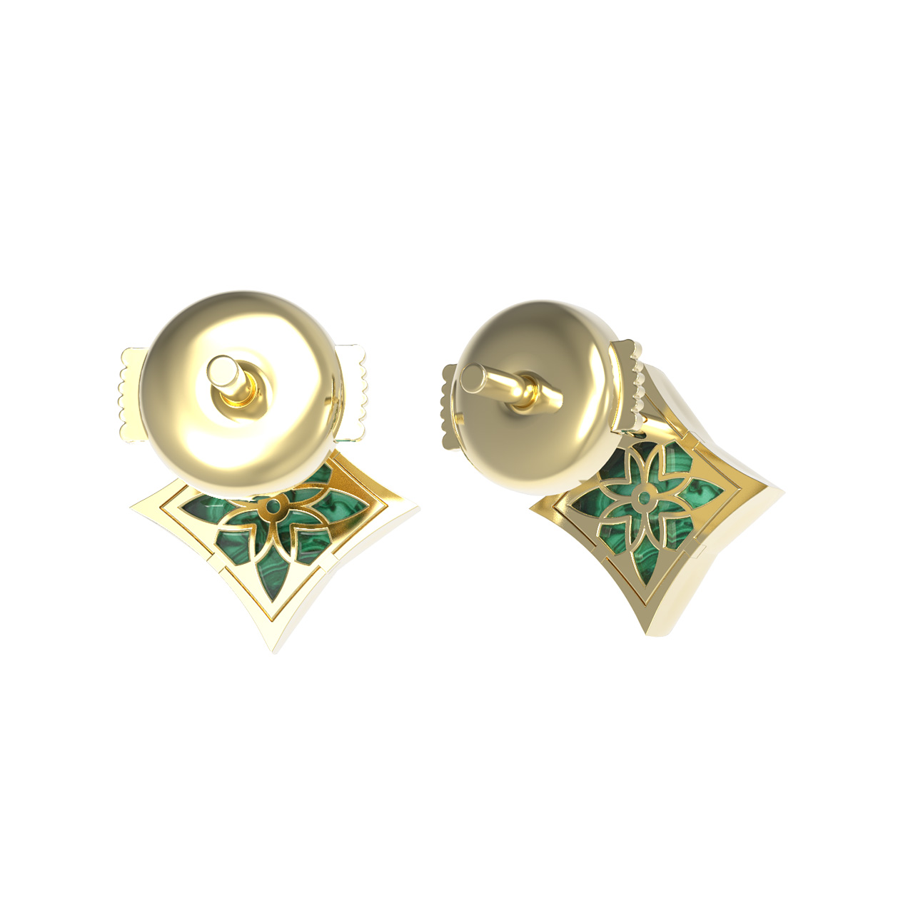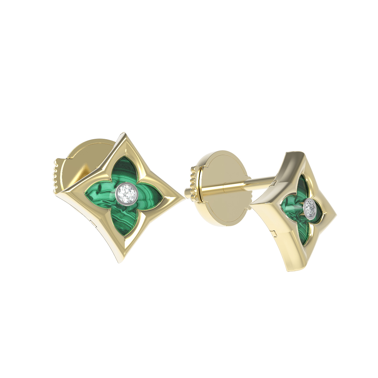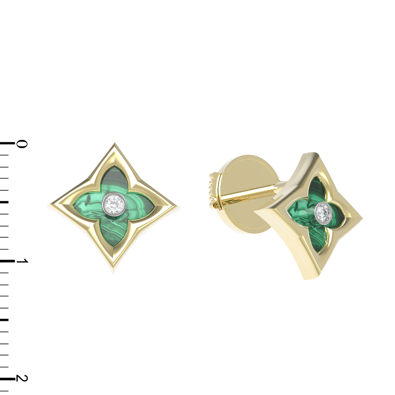 В центре композиции расположен яркий зеленый малахит, ограненный в форме ромба, что создает неповторимый цветовой акцент. Изысканность дизайна дополнена сиянием белых бриллиантов круглой формы, которые мягко обрамляют природный камень. Всего в изделии использованы 4 вставки, гармонично дополняющие друг друга. Эти серьги созданы для тех, кто ценит эстетику и качество: они подойдут как для женщин, так и для мужчин, добавляя любому стилю ноту роскоши. Данное изделие прекрасно сочетается с другими украшениями, что позволяет легко составлять элегантные комплекты для любого повода.