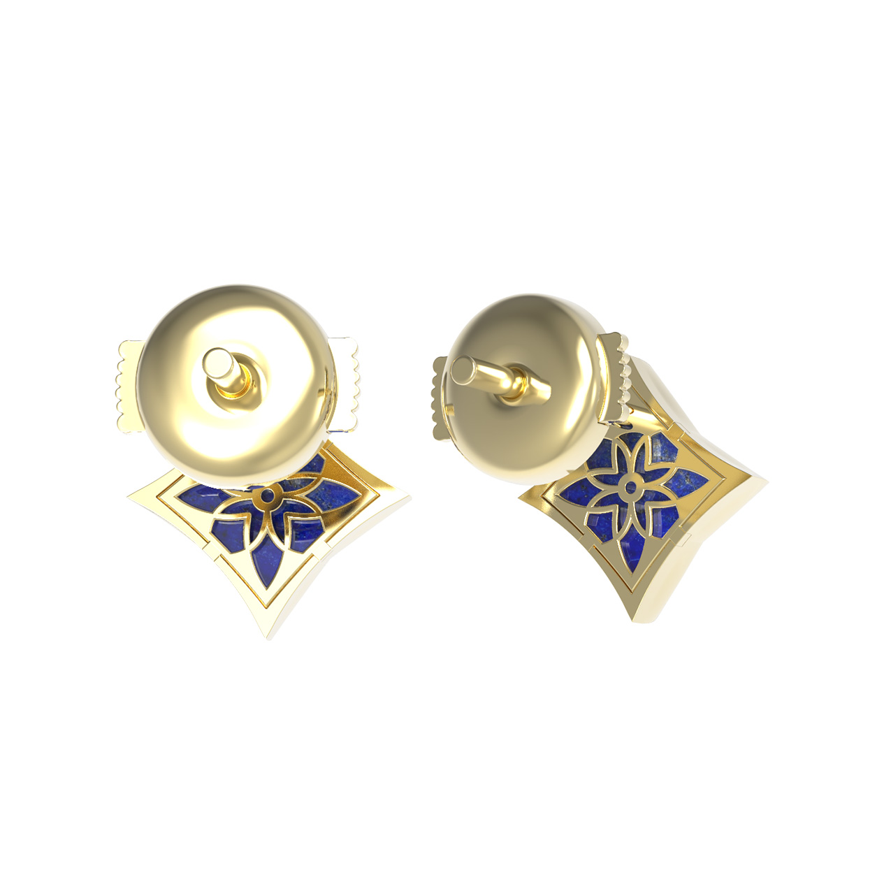 Центральным элементом композиции является сияющий бриллиант, закрепленный в центре вставки ромбовидной формы. Контраст синего лазурита и белого блеска драгоценного камня создает завораживающую игру света, привлекая внимание к каждой детали. Всего в паре серег использовано 4 вставки: природные камни гармонично дополняют друг друга, подчеркивая премиальный характер исполнения. Благодаря продуманной форме и надежному креплению, эти серьги комфортны для повседневного ношения и станут эффектным дополнением к вечернему наряду. Данное изделие прекрасно сочетается с другими украшениями, позволяя вам создавать изысканные ювелирные комплекты для любых событий.