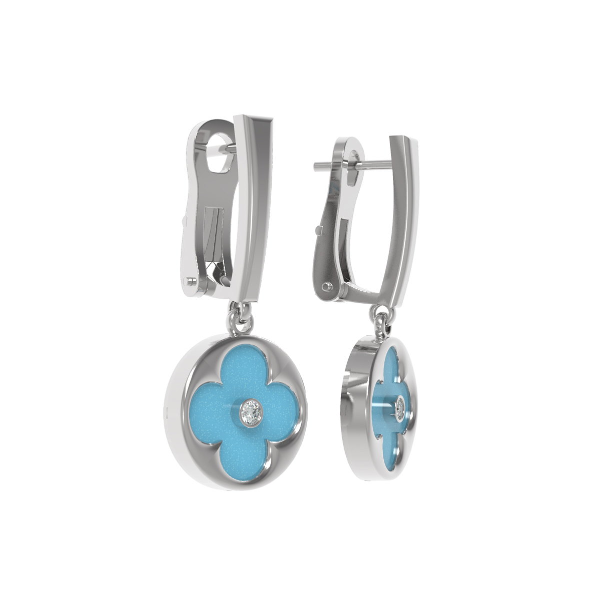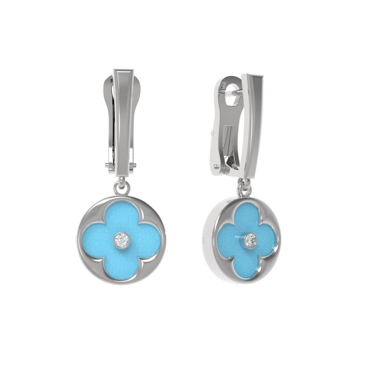 Серьги из белого золота c бриллиантами и бирюзой