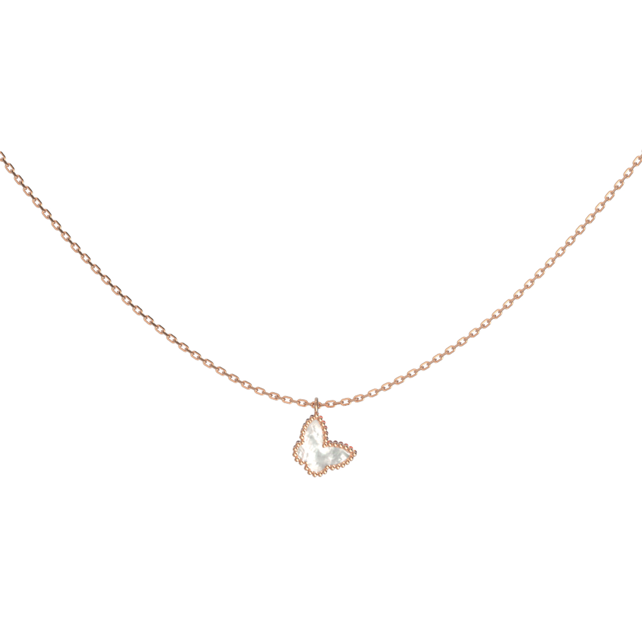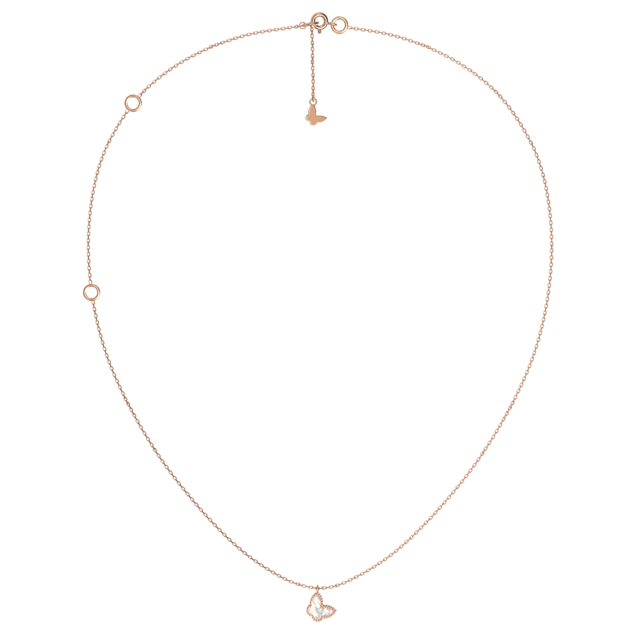 Элегантное колье из красного золота 585 пробы станет утонченным дополнением вашего образа. Это украшение из коллекции De Luxe — Бабочки привлекает внимание своим лаконичным и изящным дизайном, центральным элементом которого является декоративная вставка в форме бабочки. Нежный перламутр, обладающий естественным мягким сиянием, гармонично сочетается с теплым оттенком красного золота, создавая сбалансированное и стильное изделие.