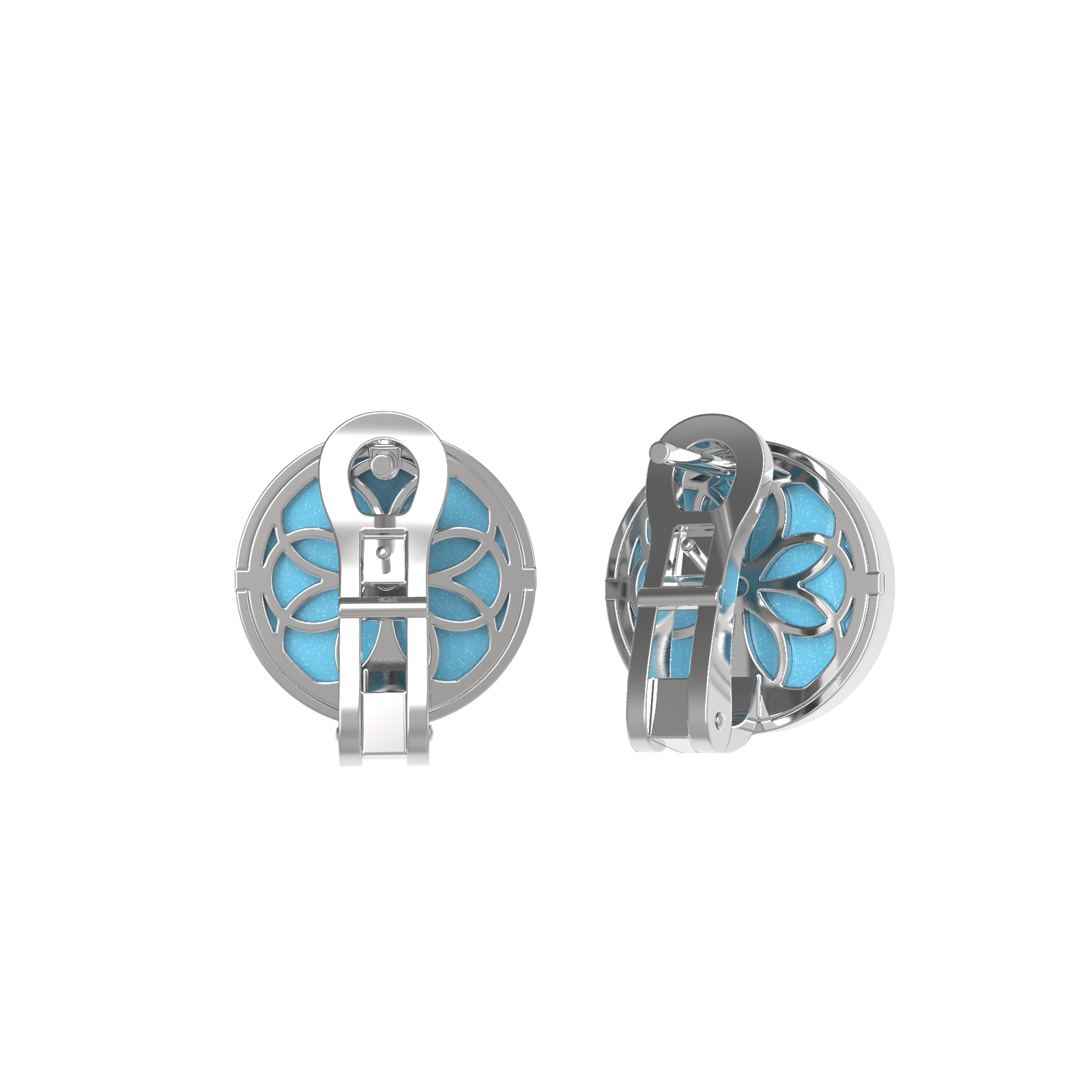 В каждой серьге гармонично расположились 4 вставки круглой формы: нежная бирюза, создающая яркий цветовой акцент, и сияющий бриллиант, придающий композиции роскошное завершение. Контрастное сочетание белого цвета металла с бирюзовым оттенком вставок делает эти серьги заметным и статусным украшением, которое подчеркнет индивидуальность своего обладателя. Данная модель универсальна и подходит как для женщин, так и для мужчин, позволяя создавать стильные и современные образы.