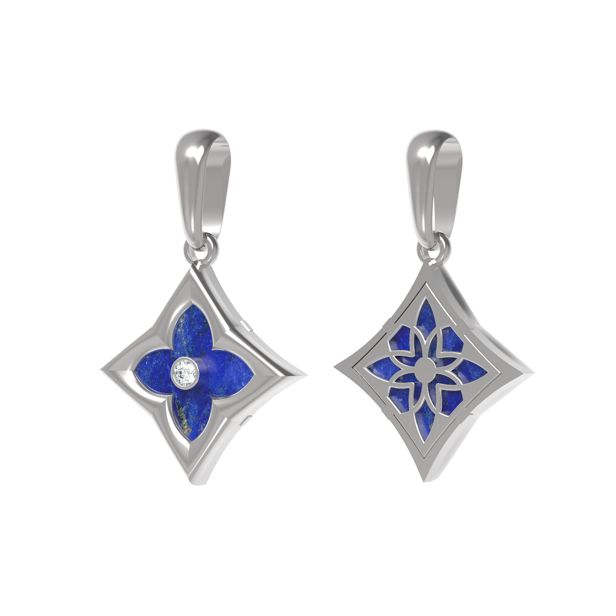 Подвеска из белого золота c бриллиантами и лазуритом