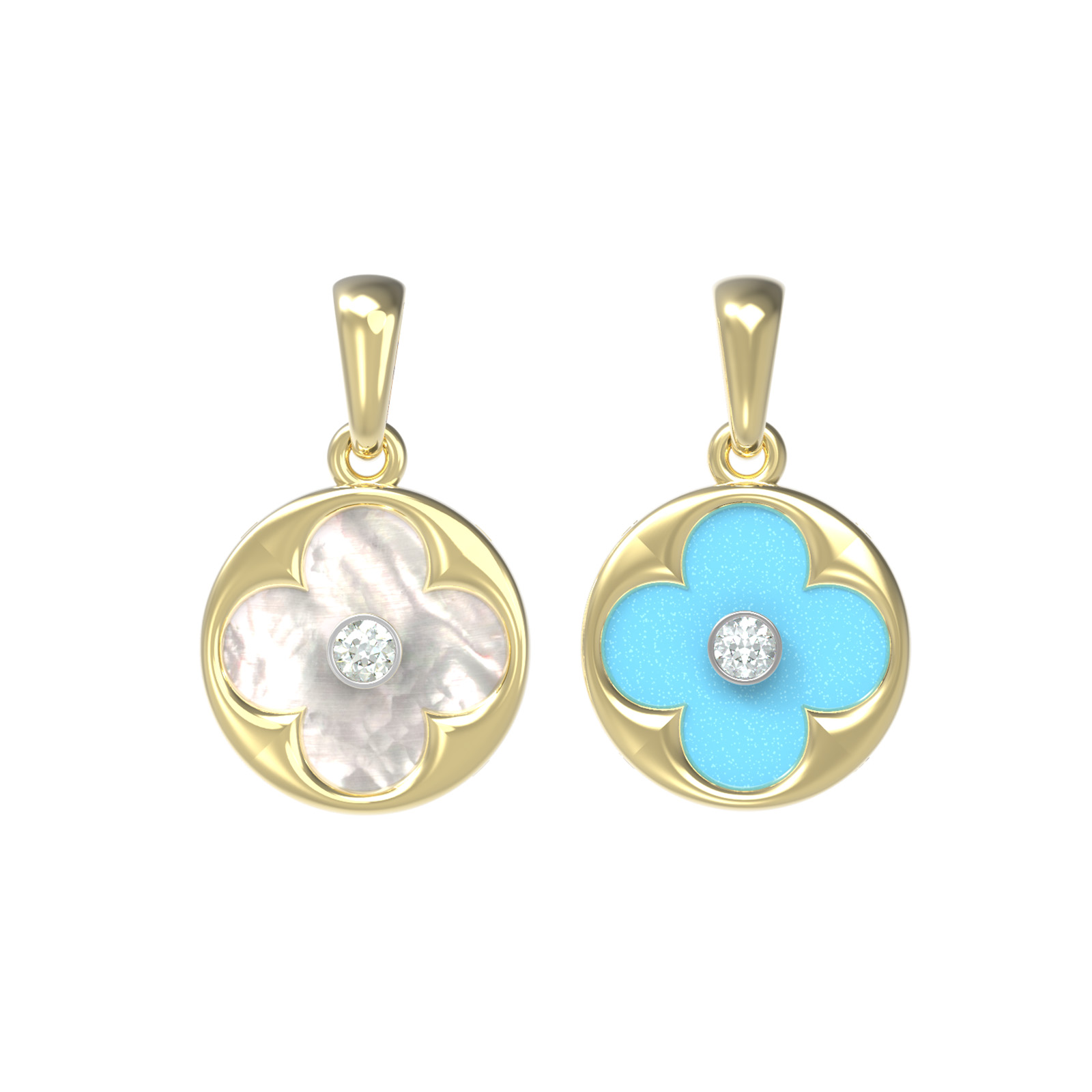 Подвеска из лимонного золота c бриллиантами, бирюзой и перламутром