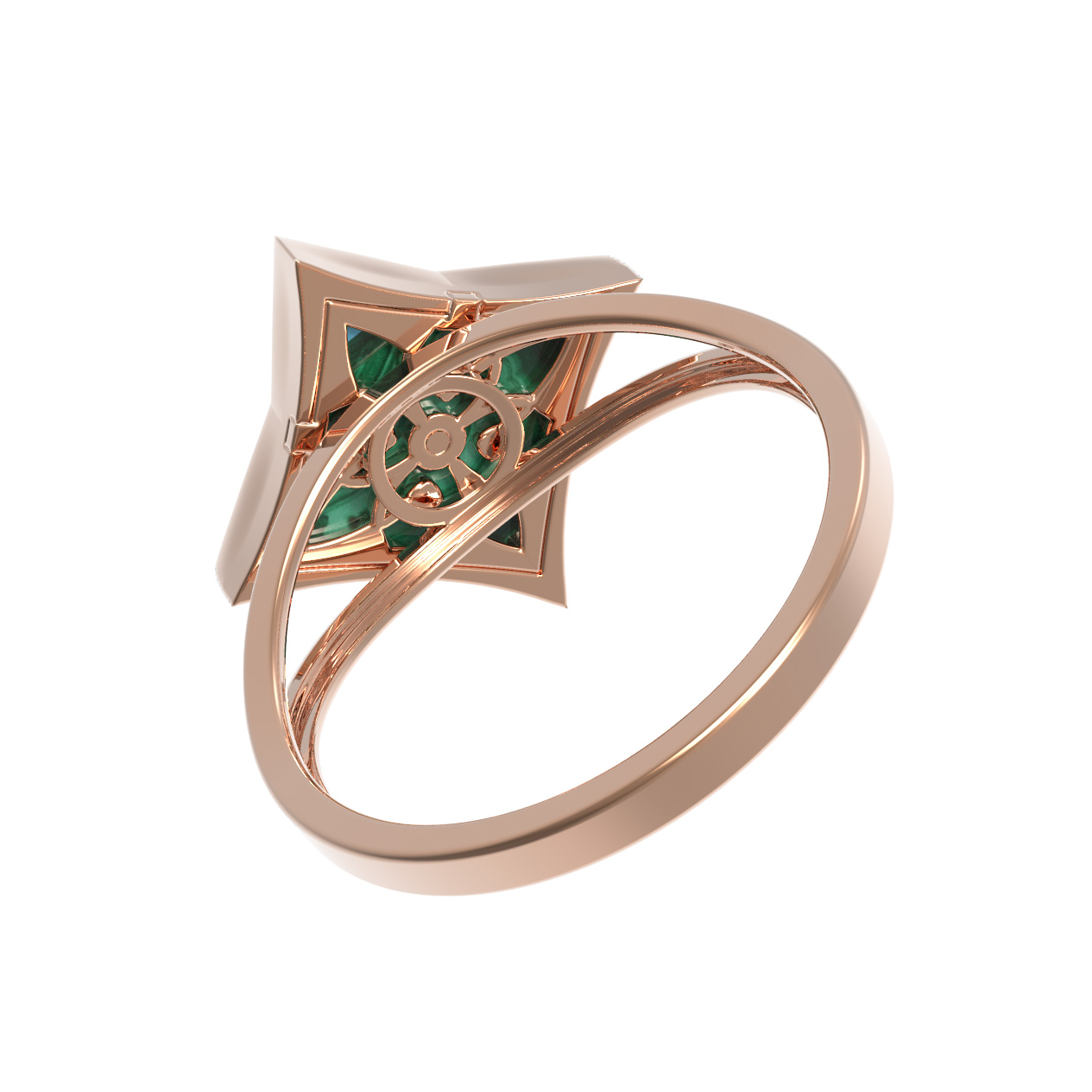 Кольцо из золота c бриллиантами и малахитом