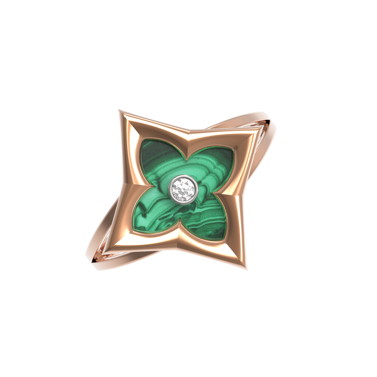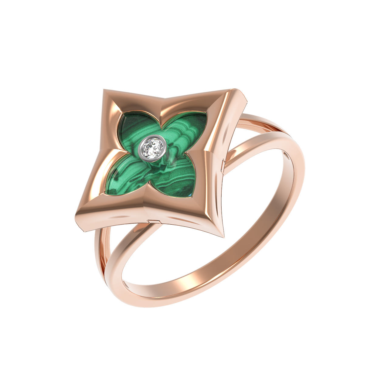 Кольцо из красного золота 585 пробы — это воплощение утонченности и статуса, представленное в коллекции De Luxe — Амальфи — Бриллианты. Изысканный дизайн в форме клевера притягивает взгляд, создавая гармоничный акцент для любого образа. Центральным элементом украшения выступает глубокий зеленый малахит, который эффектно контрастирует с теплым оттенком драгоценного металла. Инкрустация сверкающим белым бриллиантом круглой формы добавляет изделию благородного блеска, превращая его в настоящий символ роскоши.