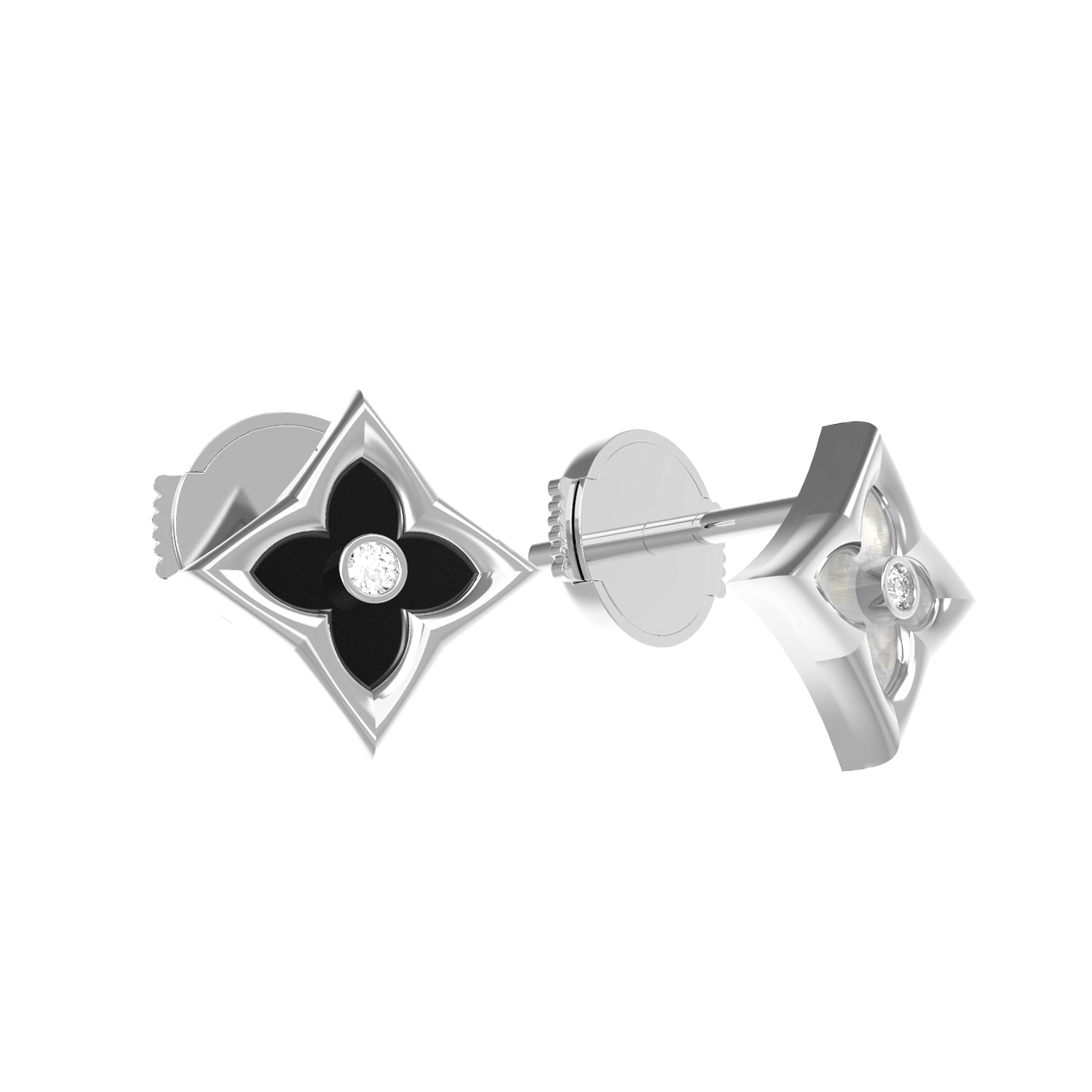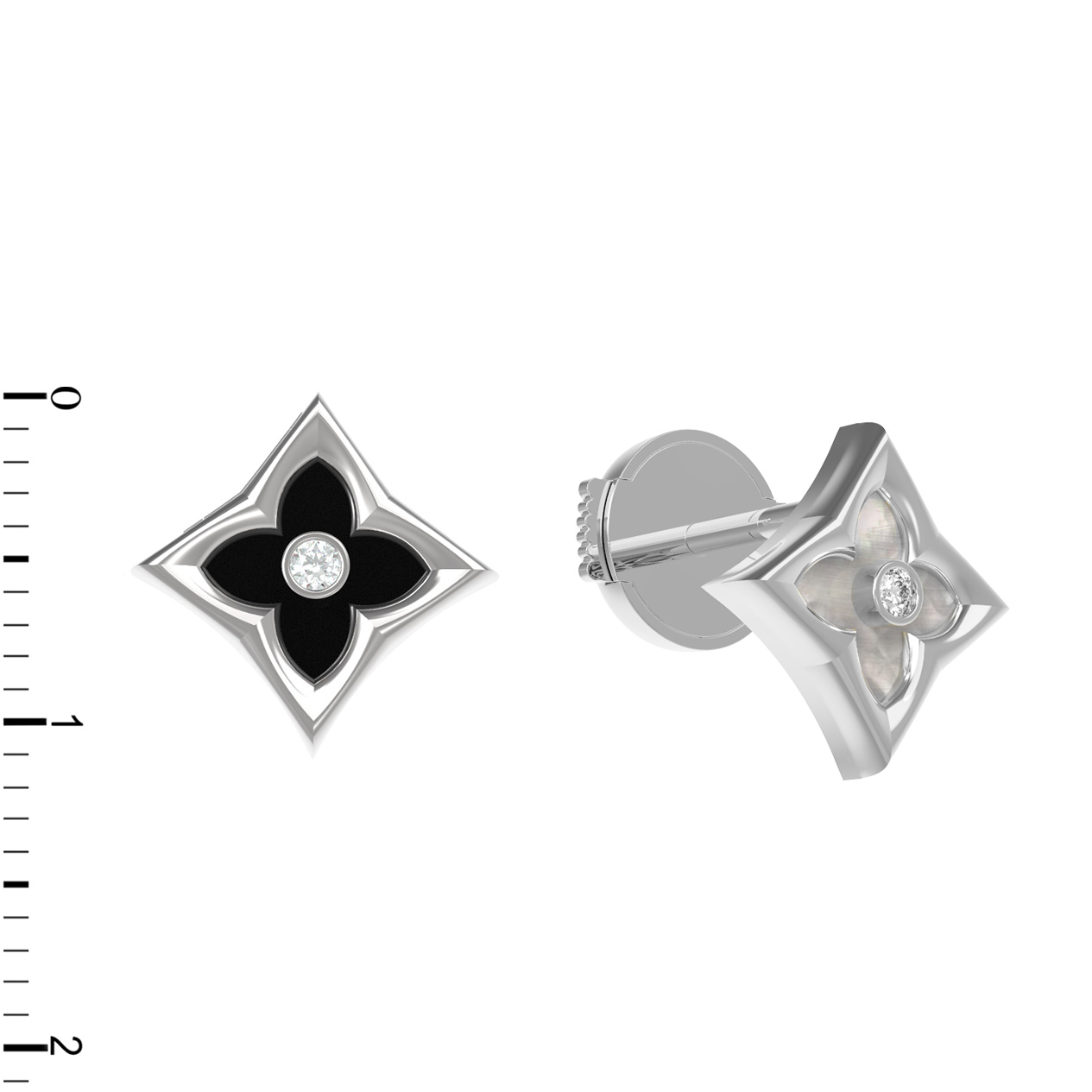 Центральным элементом композиции является изящная вставка в форме ромба, внутри которой деликатно расположился круглый бриллиант, придающий аксессуару роскошное сияние. Общий дизайн дополняют глубокий черный оникс и нежный перламутр, создавая элегантный баланс между строгой классикой и современным стилем. В изделии используется всего 3 вставки, что подчеркивает лаконичность и завершенность формы. Белый цвет золотого основания идеально гармонирует с белыми, перламутровыми и черными оттенками вставок, позволяя серьгам безупречно вписаться в любой гардероб.