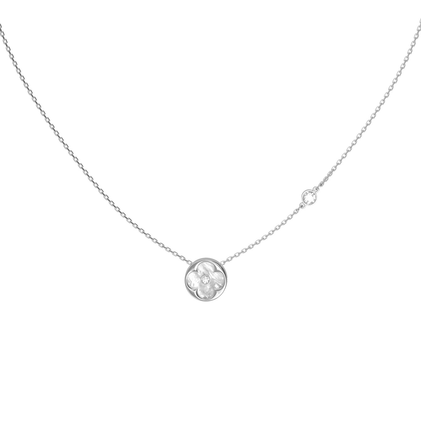 В центре композиции расположен перламутр, чьи переливы идеально сочетаются с двумя вставками в форме круглых бриллиантов. Белый цвет вставок гармонично дополняет общую палитру изделия, создавая эффект чистоты и благородства. Это колье — идеальный выбор для тех, кто ценит внимание к деталям и высокое качество ювелирного исполнения. Вы можете носить его как самостоятельный аксессуар или дополнить другими изделиями, составив стильные комплекты для любого повода. Лаконичность линий и выверенный дизайн делают это украшение незаменимым спутником вашего повседневного или вечернего гардероба.