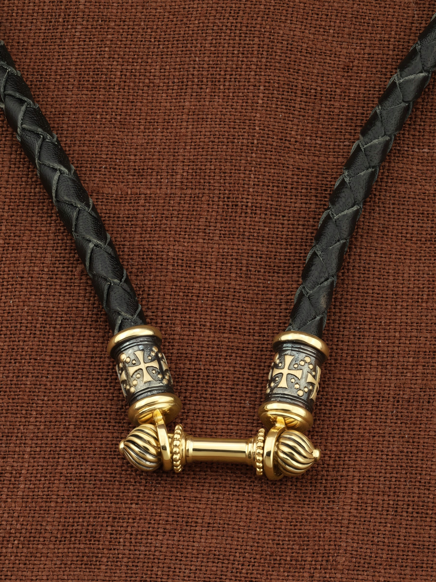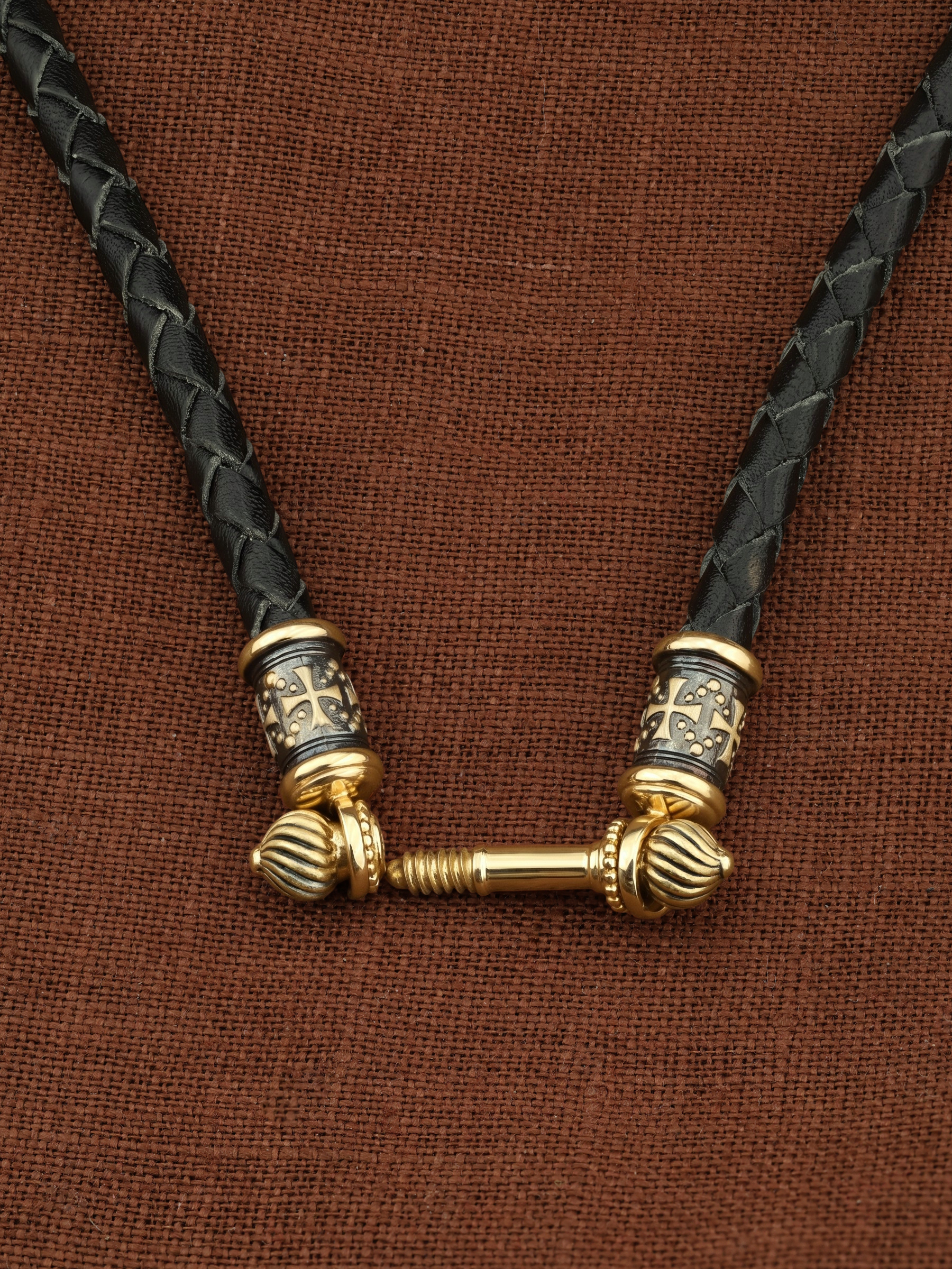Гайтан из лимонного золота c кожаным шнурком