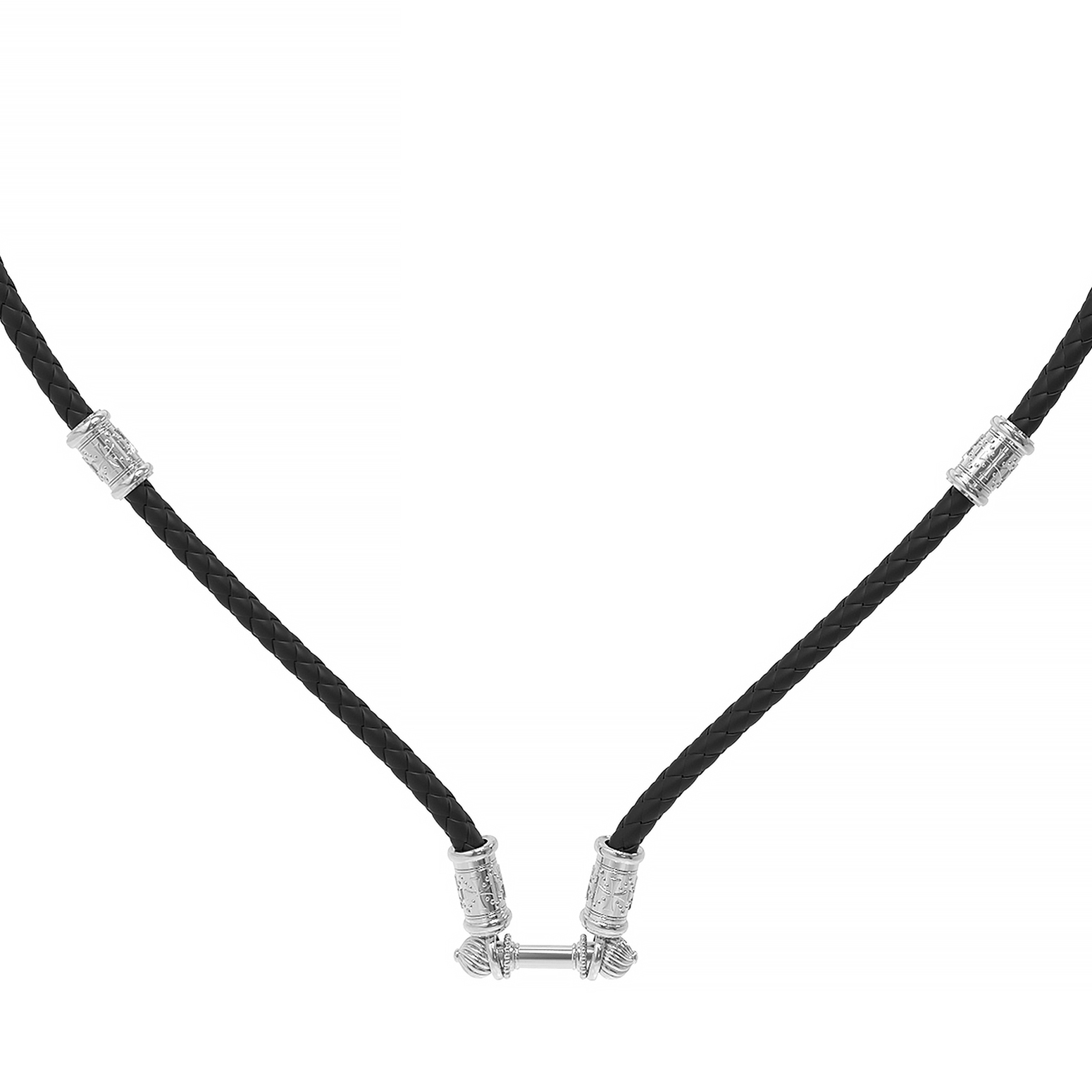 Гайтан из белого золота c кожаным шнурком