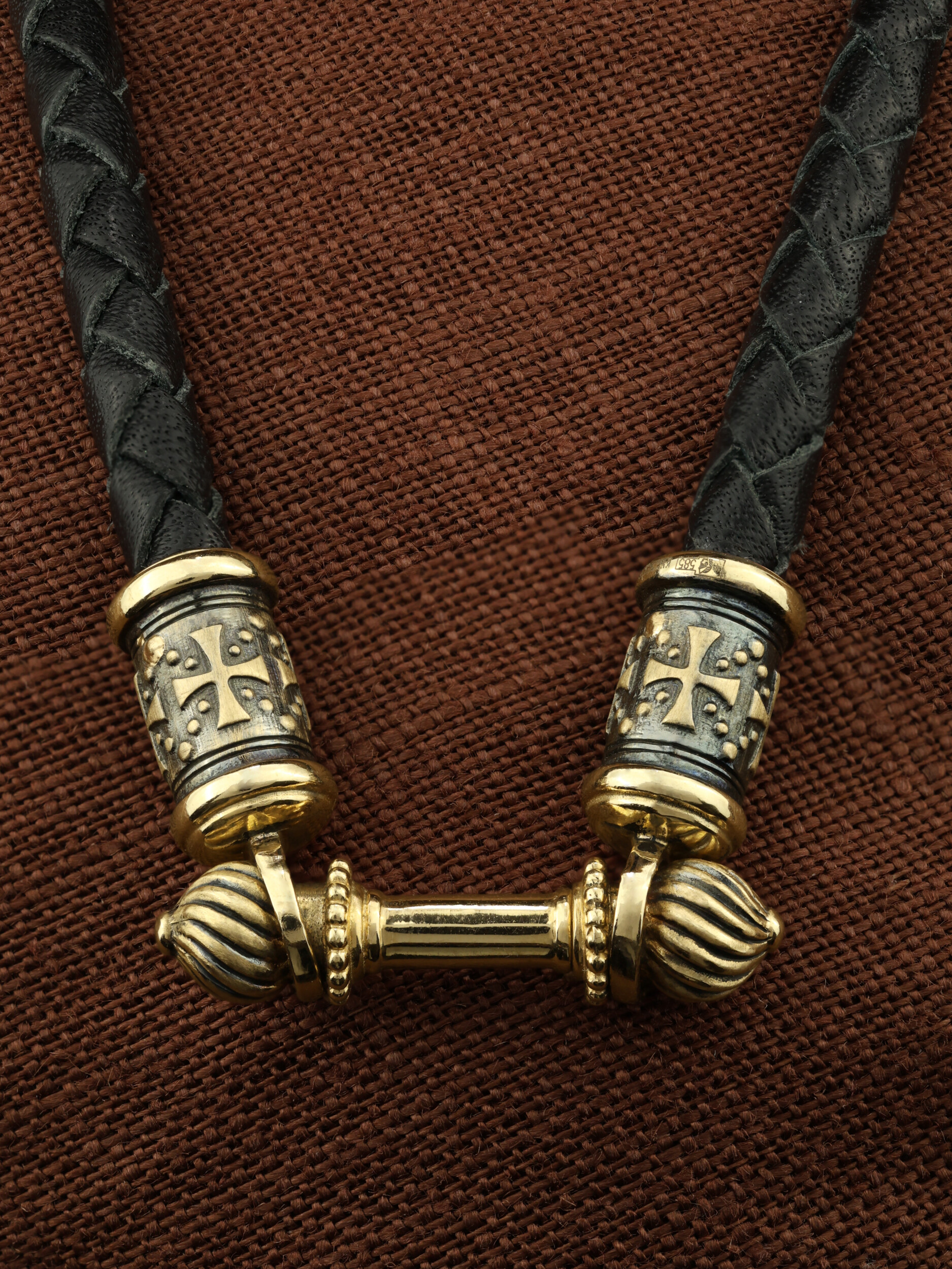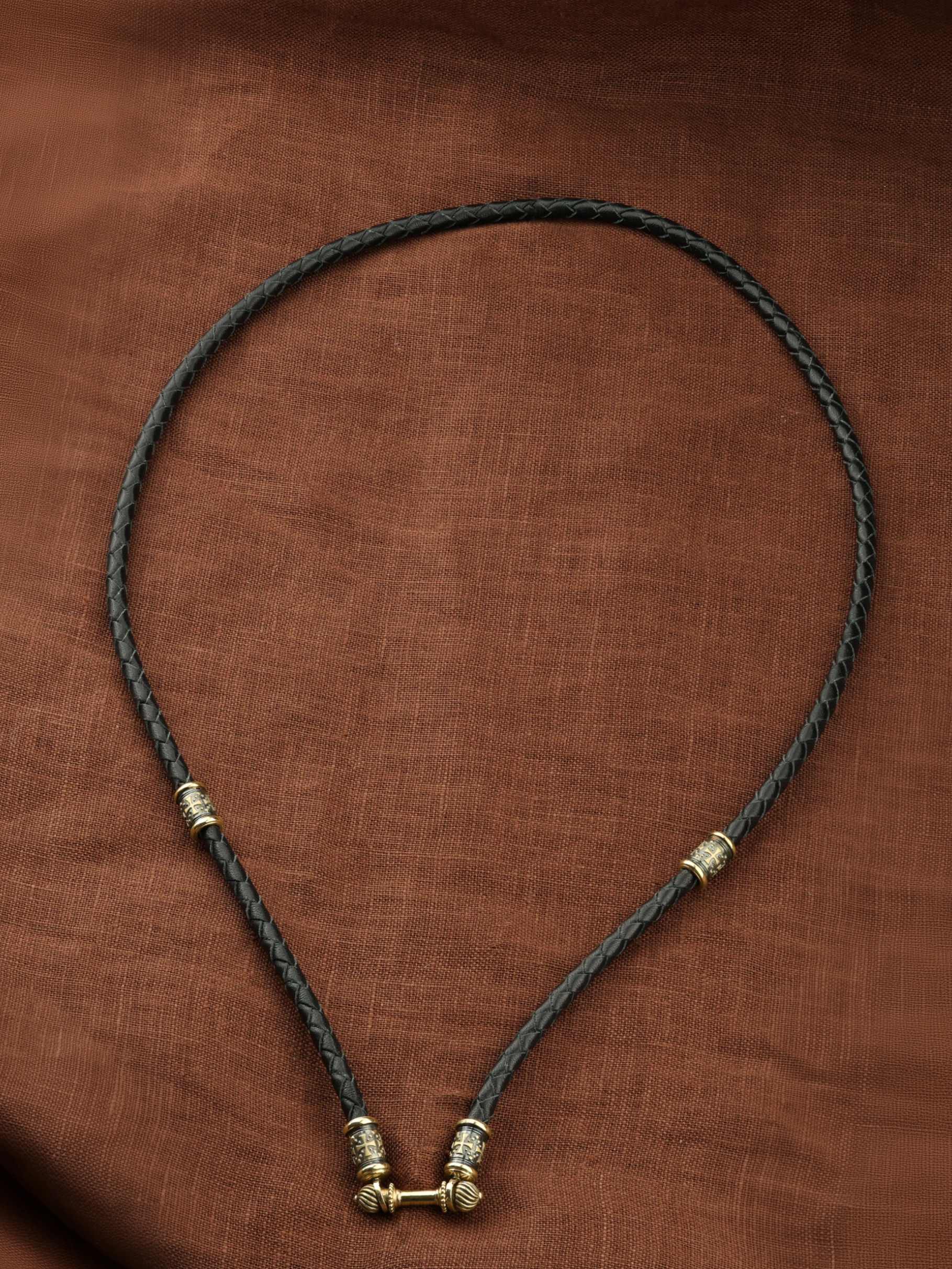 Гайтан из лимонного золота c кожаным шнурком