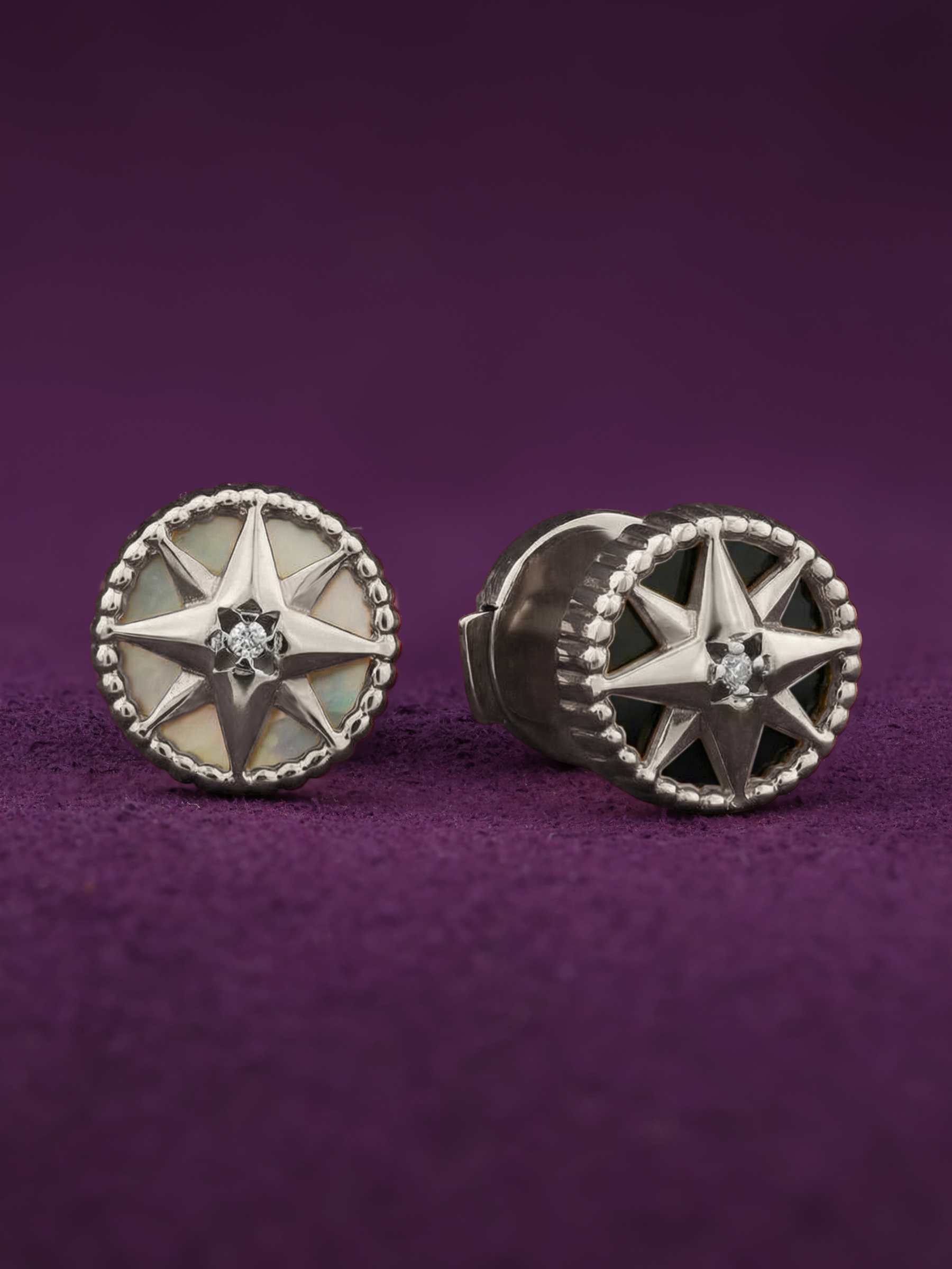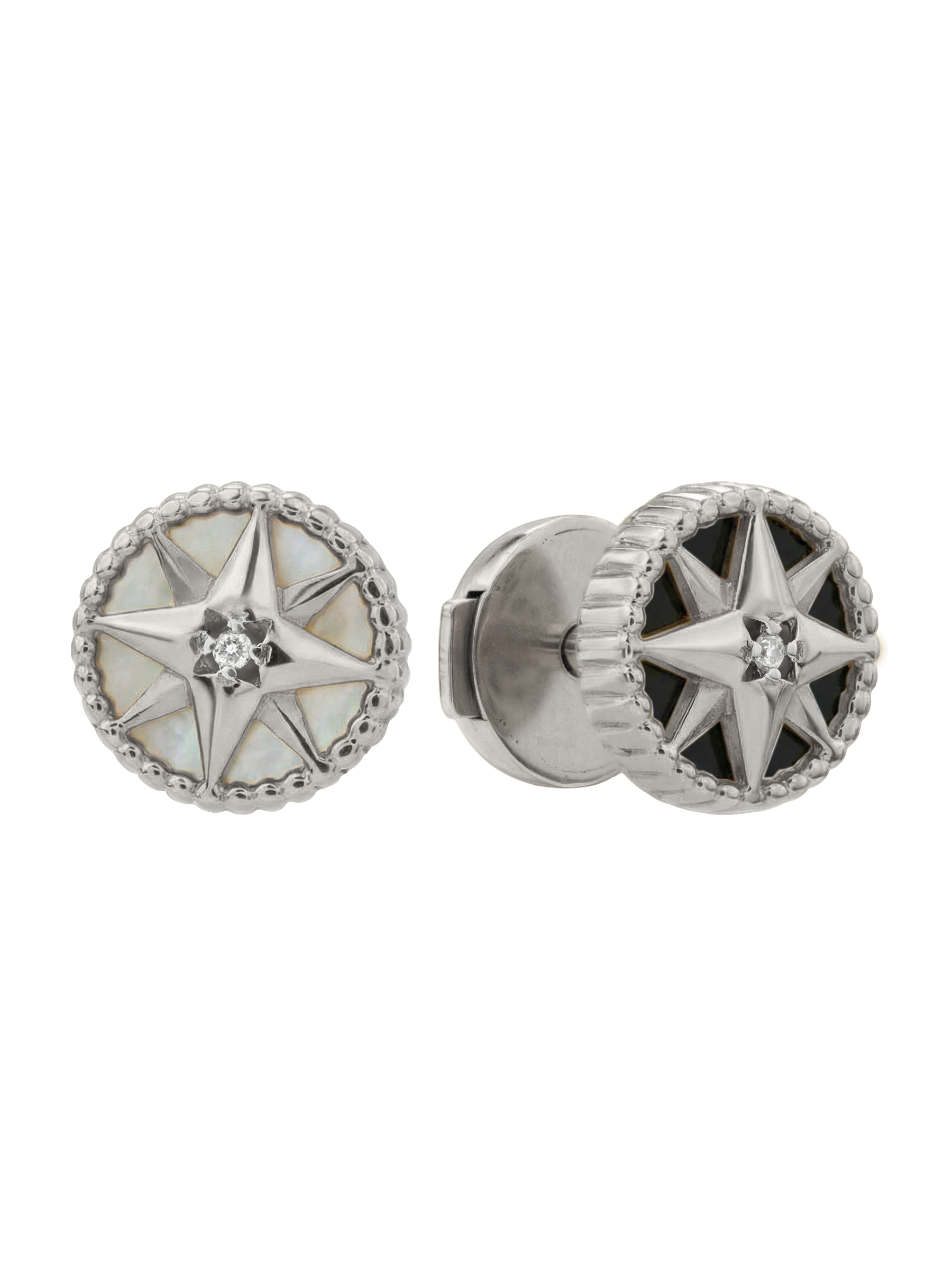 Изысканные серьги из коллекции De Luxe — Звёзды — Бриллианты станут воплощением стиля и утонченности в вашем образе. Эти ювелирные изделия, выполненные из благородного белого золота 585 пробы, привлекают внимание своим глубоким символизмом и мастерством исполнения. Дизайн украшения вдохновлен эстетикой звезд, где центральный акцент сделан на искусном сочетании контрастных материалов. Вставки круглой формы включают в себя загадочный черный оникс, нежный перламутр и сияющий бриллиант, которые гармонично дополняют друг друга.
