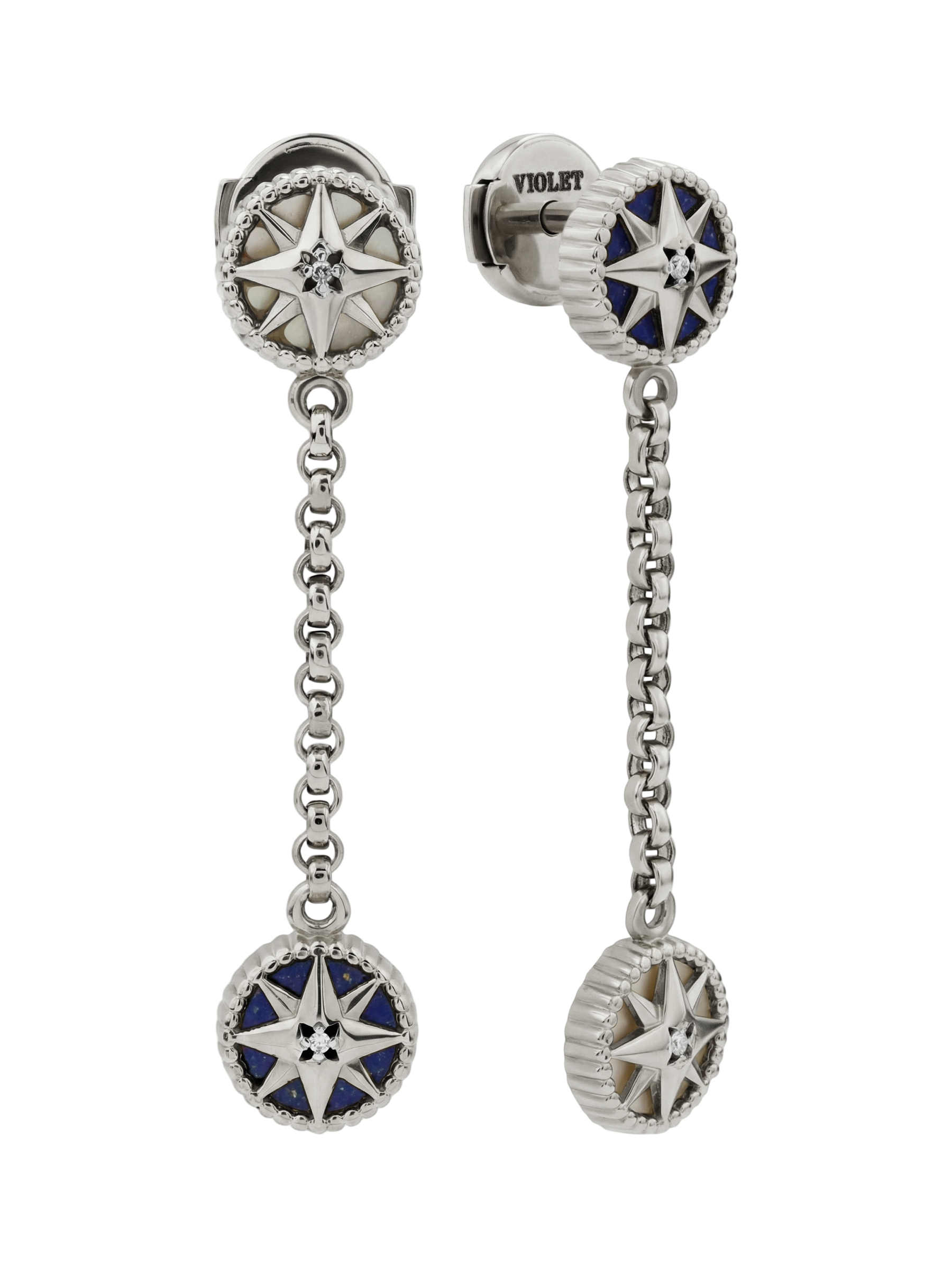 Серьги из белого золота c бриллиантами, лазуритом и перламутром