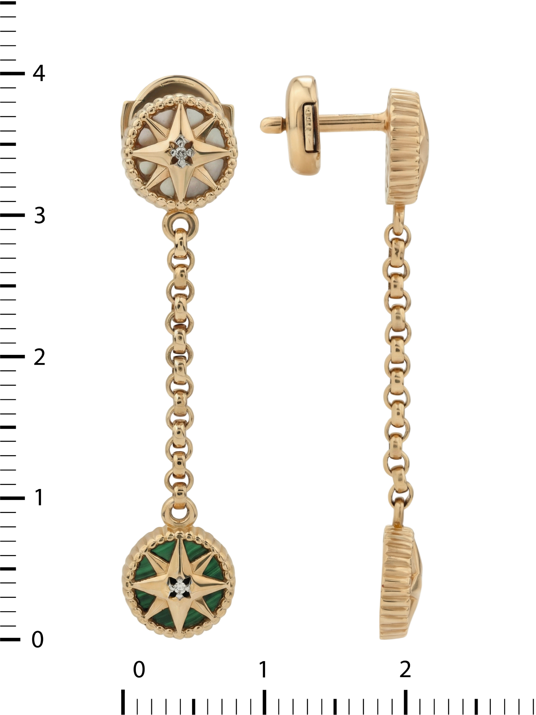 Серьги из золота c бриллиантами, малахитом и перламутром
