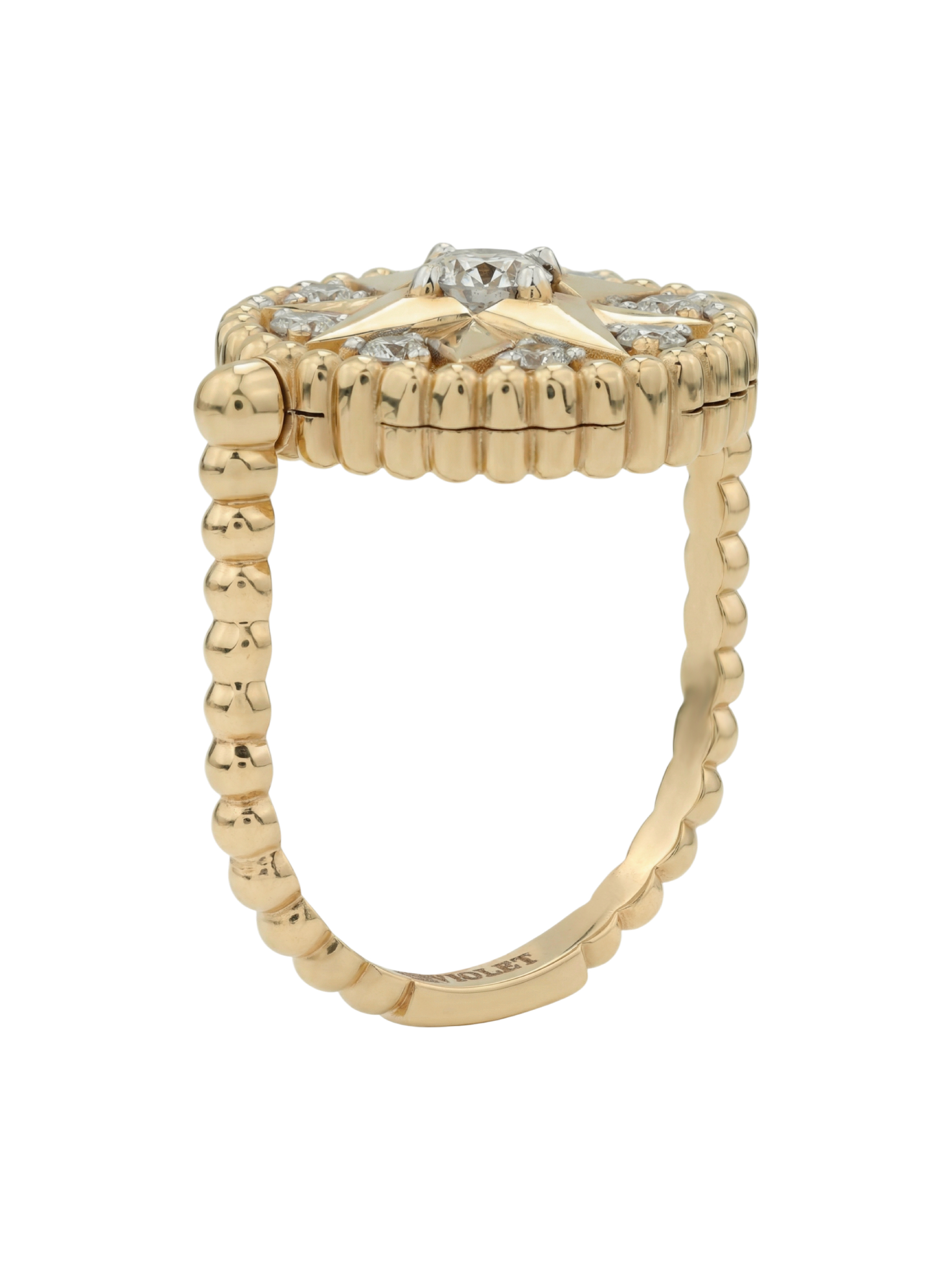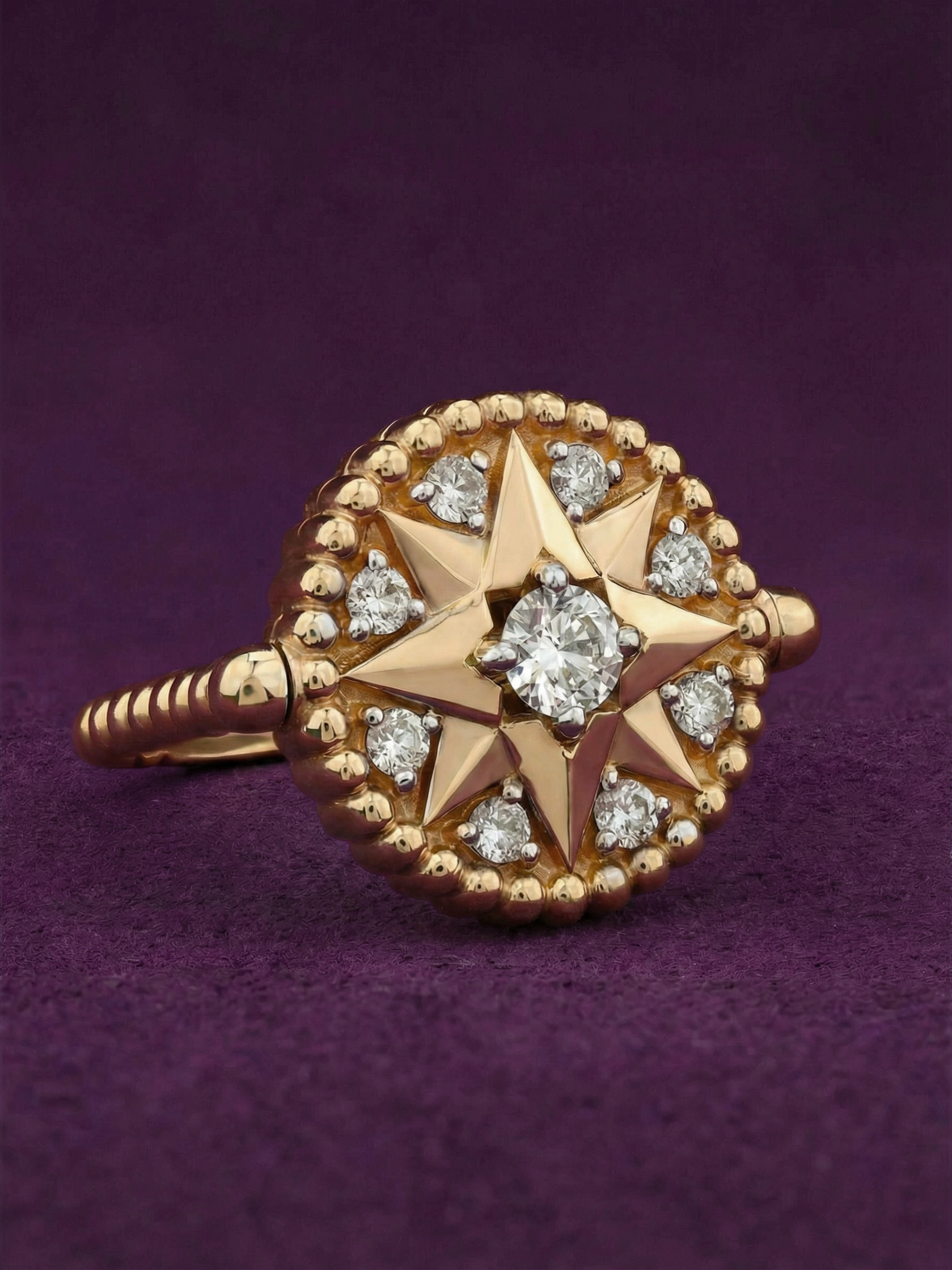 Роскошное кольцо из лимонного золота 585 пробы из коллекции De Luxe — Звёзды — Бриллианты станет безупречным акцентом вашего образа. Дизайн украшения вдохновлен небесными светилами: центральным элементом композиции выступает изящный символ звезды, подчеркивающий исключительный вкус обладателя. Теплый оттенок лимонного золота гармонично сочетается с холодным блеском драгоценных камней, создавая эффектный контраст.