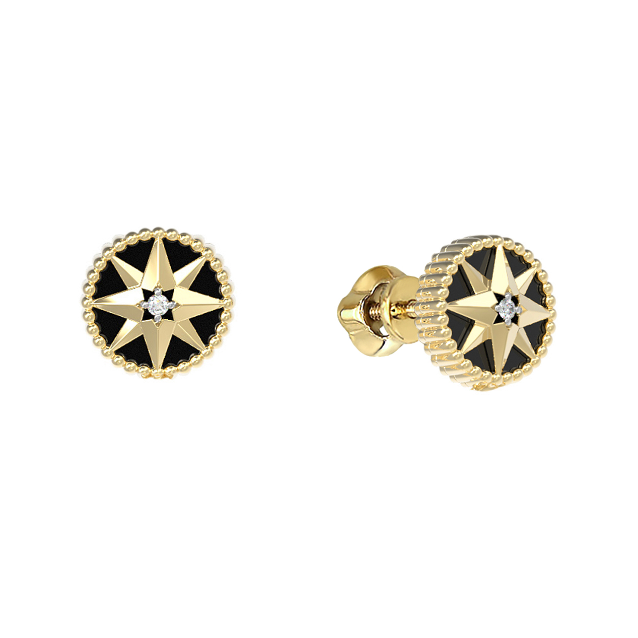 Серьги из лимонного золота 585 пробы из коллекции De Luxe — Звёзды — Бриллианты — воплощение безупречного стиля и элегантности. Данная модель выполнена в изысканном дизайне в виде звезд, который привлекает внимание своей лаконичностью и глубоким смыслом. Центром композиции является роскошное сочетание контрастных материалов: насыщенный черный оникс подчеркивает яркость металла, создавая эффектный визуальный акцент.