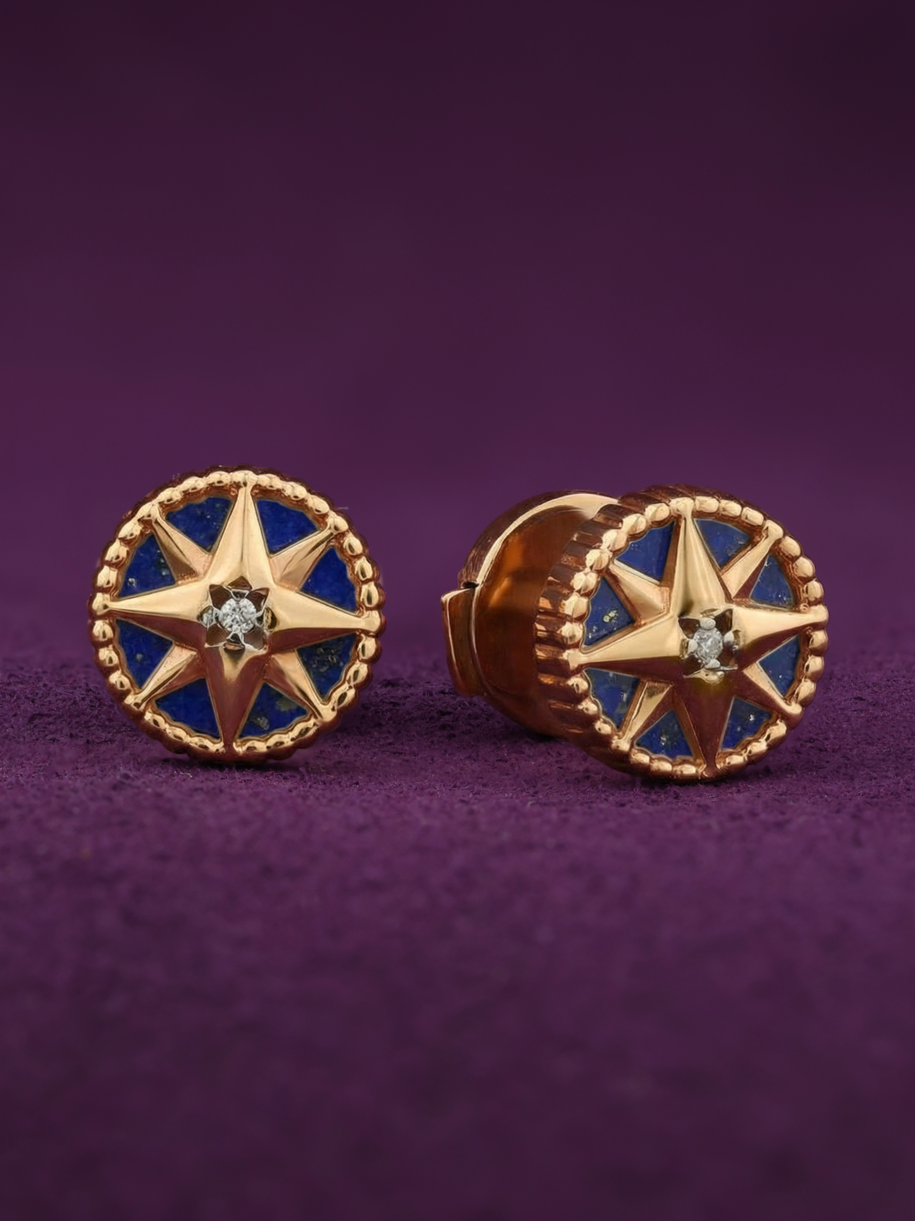 Откройте для себя совершенство ювелирного искусства в серьгах из красного золота 585 пробы, представленных в коллекции De Luxe — Звёзды — Бриллианты. Эти украшения вдохновлены эстетикой звездного неба, воплощенной в оригинальном дизайне в форме путеводной звезды. Ювелиры с безупречным мастерством объединили теплый отблеск металла с глубоким, насыщенным синим цветом натурального лазурита. Контраст благородного материала и глубокого оттенка вставки создает выразительный и притягательный образ.