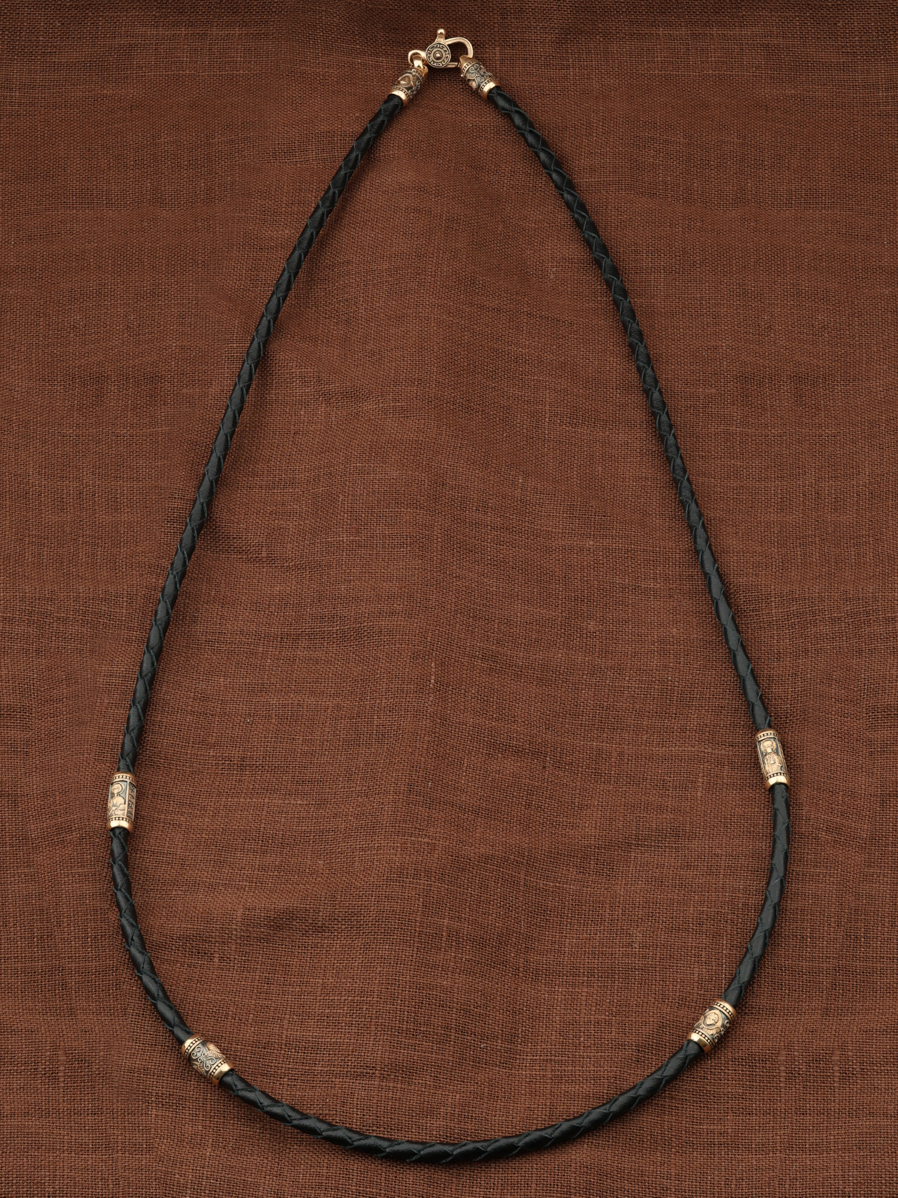 Гайтан из золота c кожаным шнурком