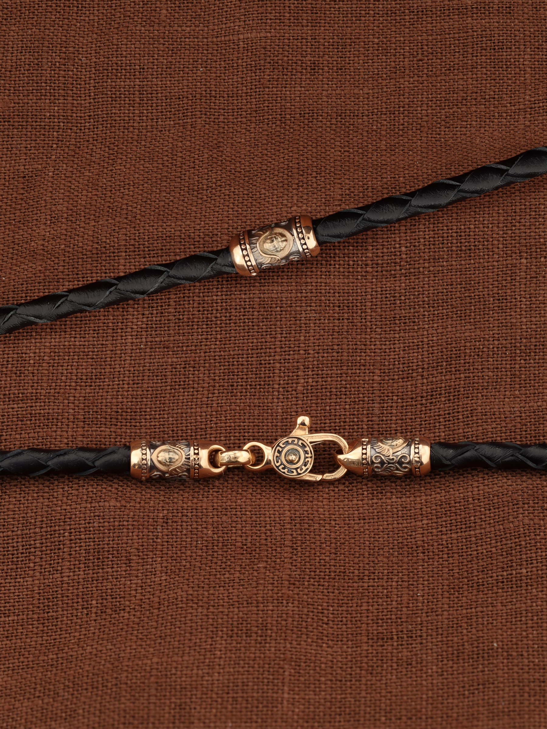 Гайтан из золота c кожаным шнурком