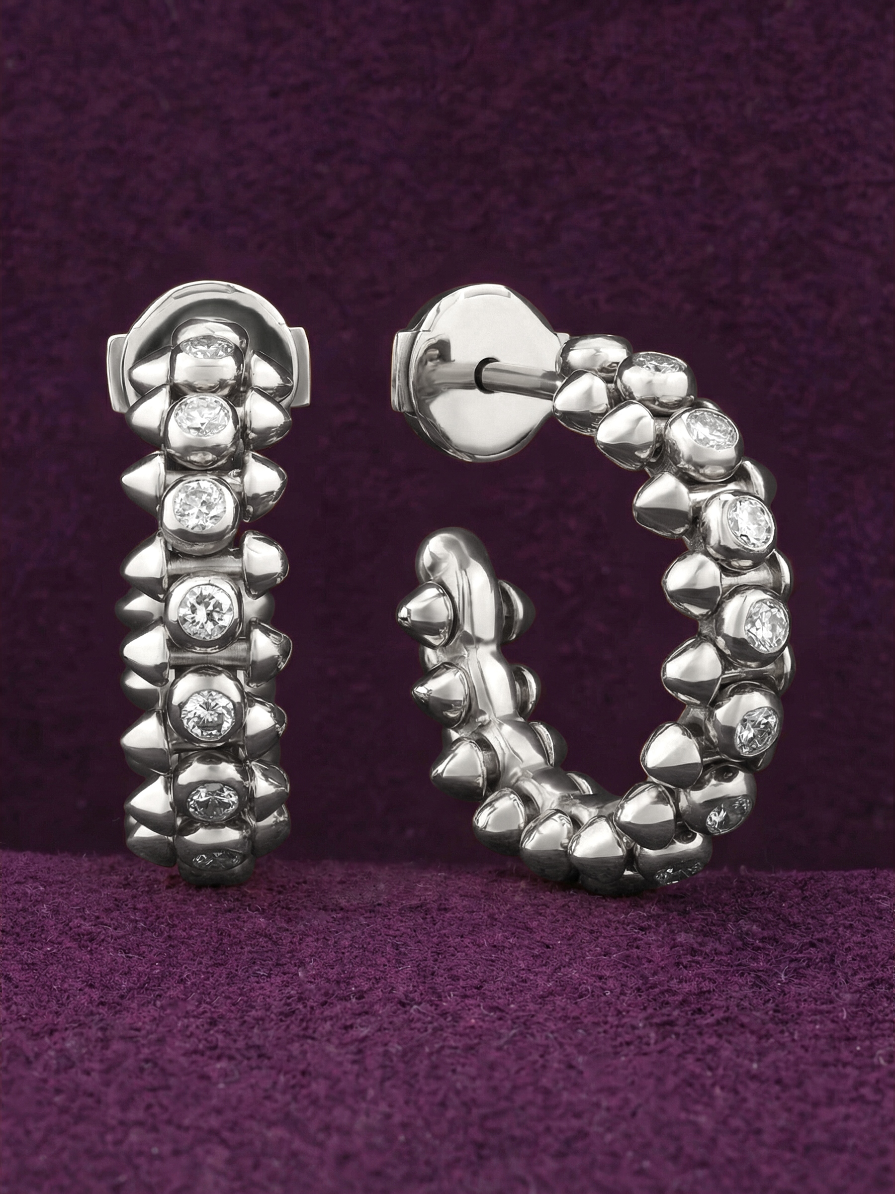 Серьги из белого золота 585 пробы из коллекции De Luxe — Дерзость представляют собой смелое сочетание дерзкого дизайна и ювелирного мастерства. Эти украшения, выполненные в виде колец с выразительными шипами, созданы для тех, кто не боится подчеркнуть индивидуальность и любит нестандартные решения в аксессуарах. Стиль унисекс делает эти серьги отличным выбором как для женщин, так и для мужчин, которые ценят премиальные материалы и яркую эстетику.