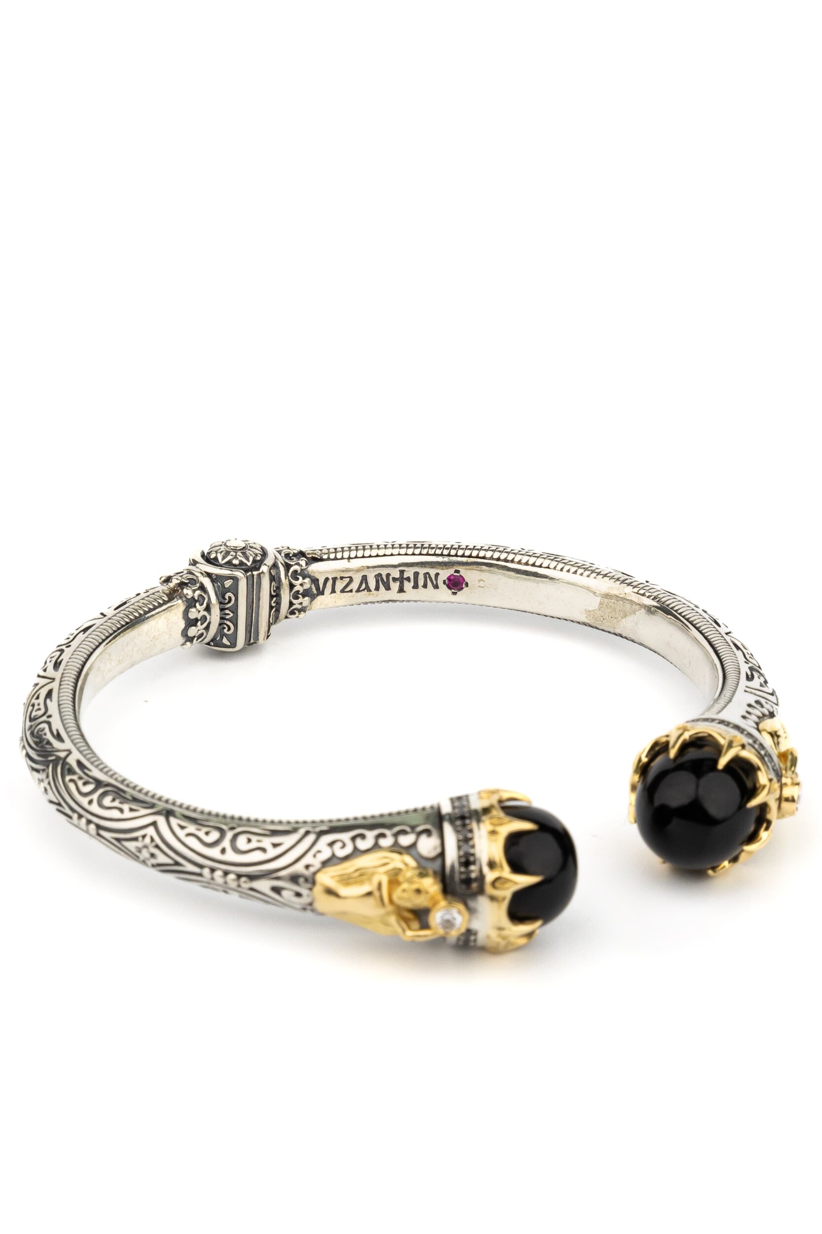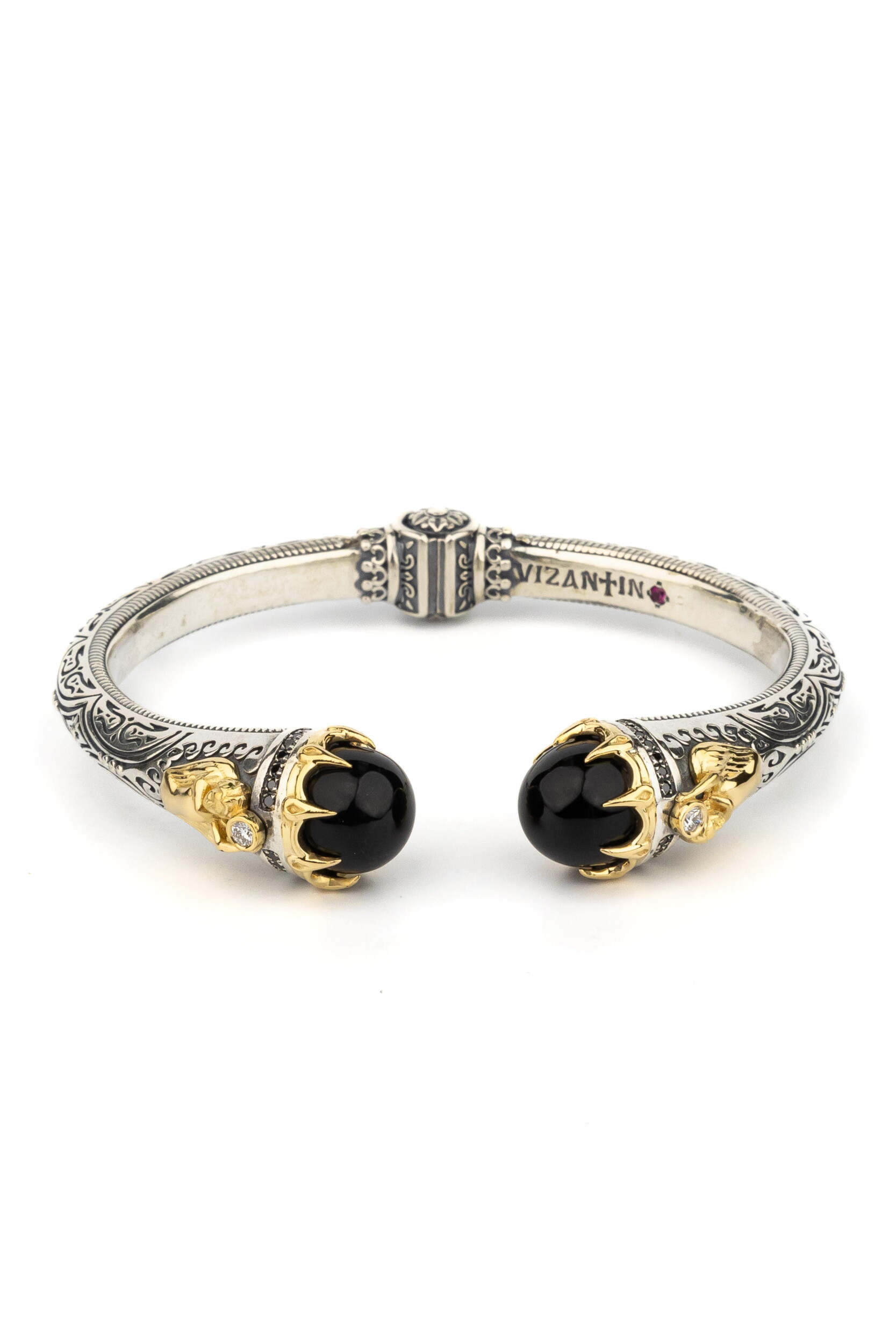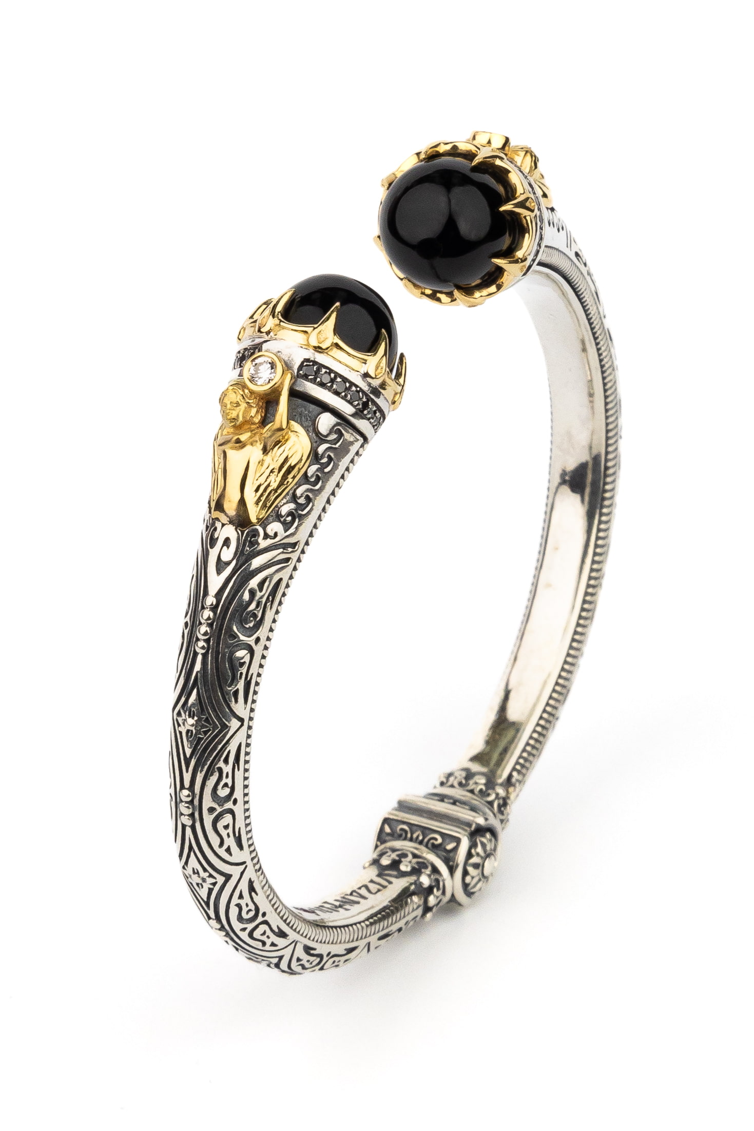 Браслет из серебра и золота c бриллиантами, ониксом и рубином