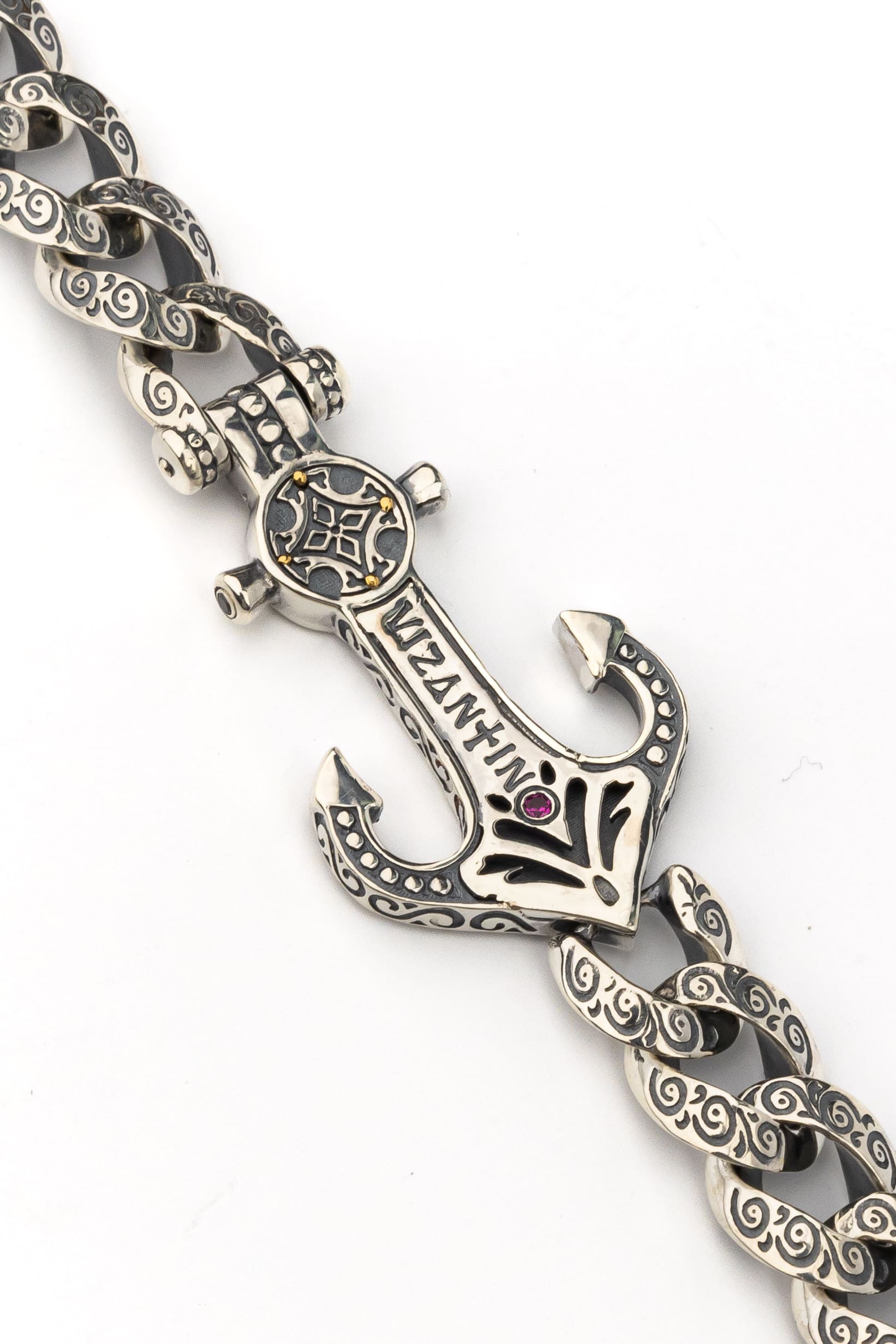 Браслет из серебра и золота c бриллиантами и рубином