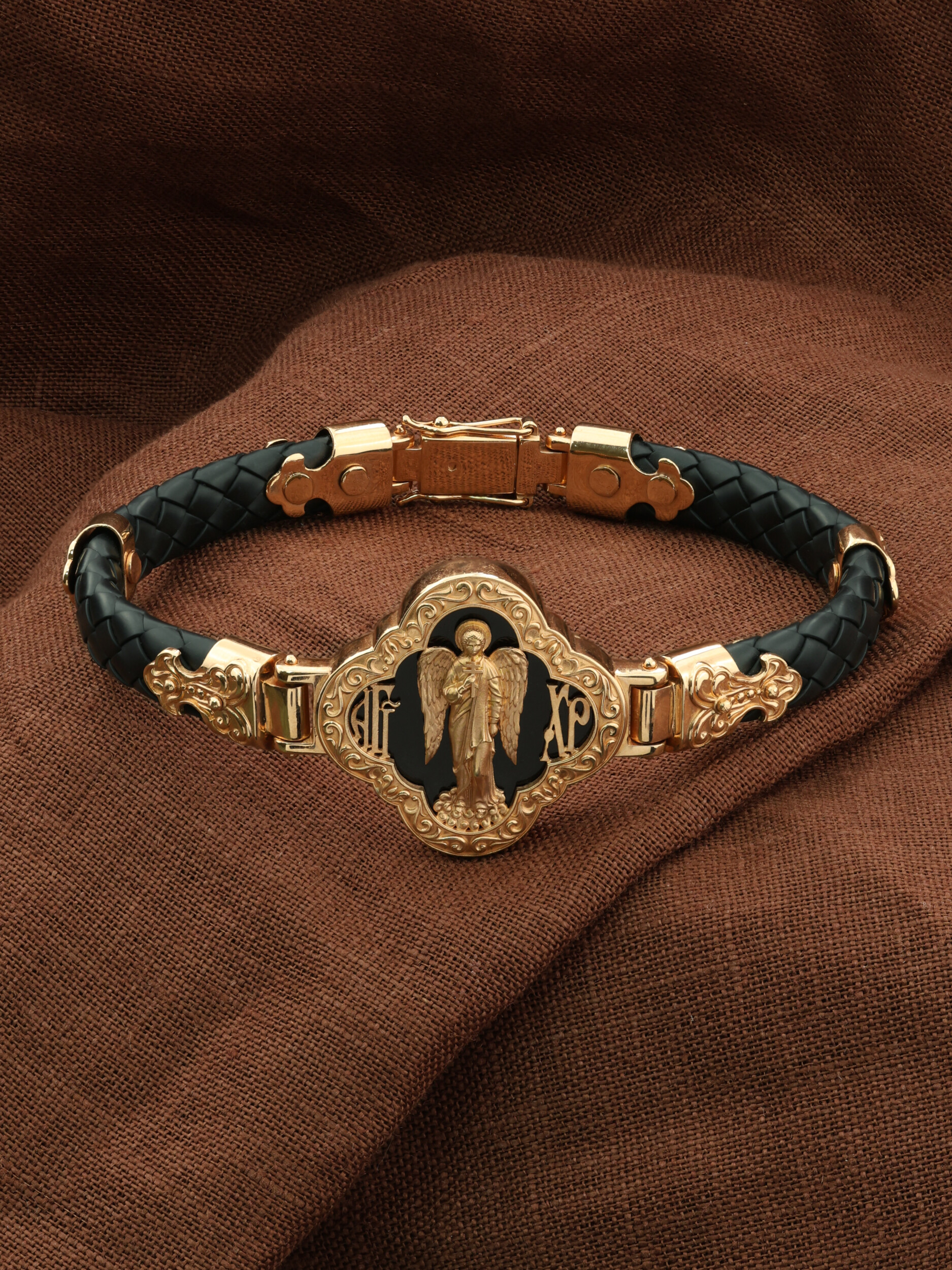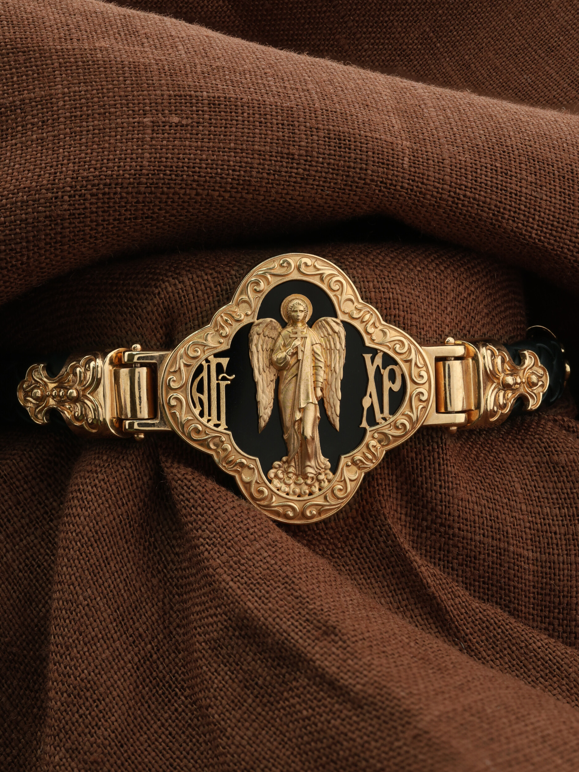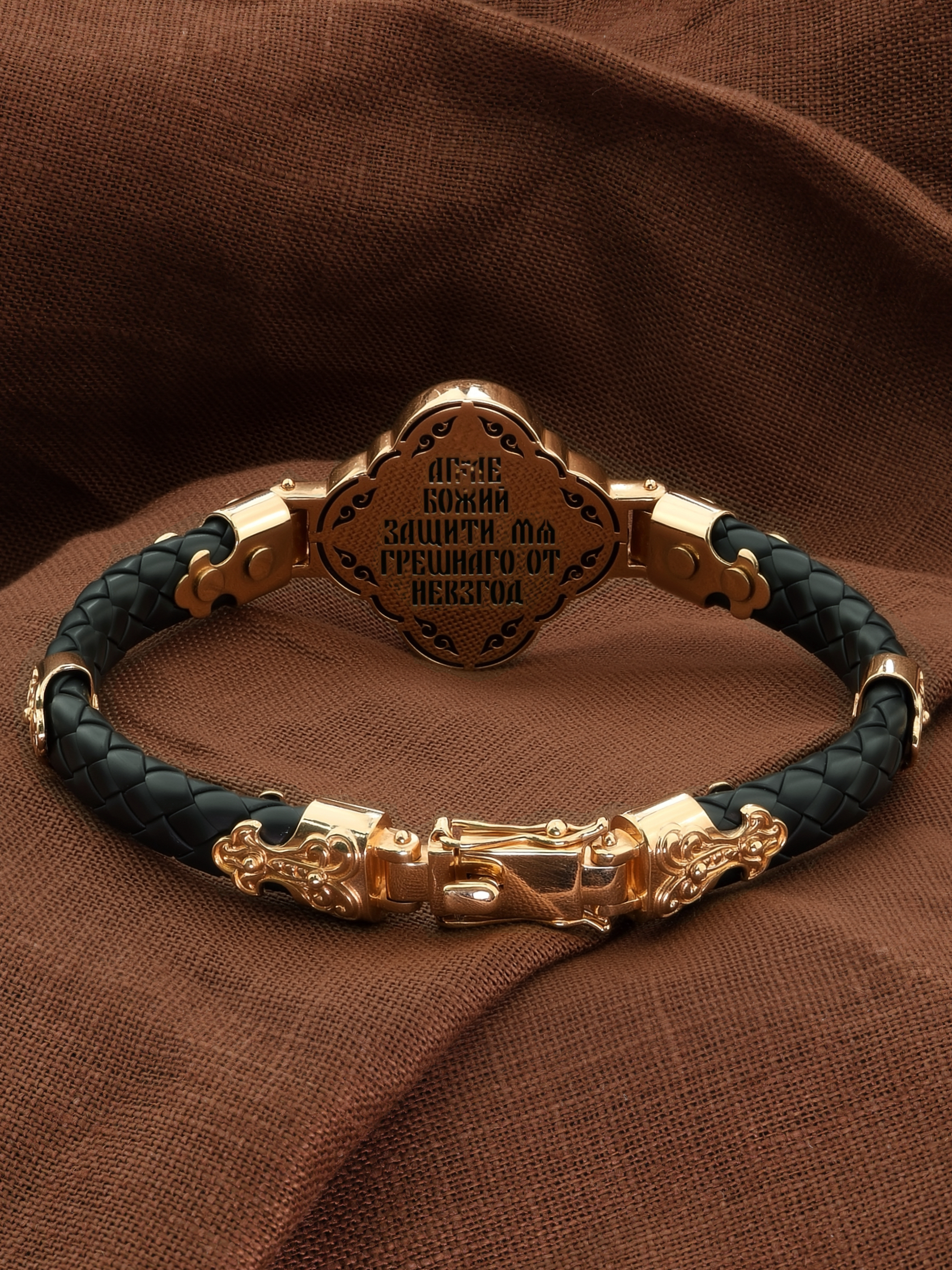 На лицевой стороне основного звена изображён Святой Ангел-Хранитель. Ангел Хранитель — это Ангел приставляемый Богом к человеку при крещении для охраны и помощи в добрых делах. Он невидимо находится при человеке на протяжении всей его жизни, если человек сохраняет в себе любовь к Богу и истинную веру перед Ним. Ангел-Xранитель делают для нас все, что служит к истинному нашему благу и спасению. Невидимо пребывая при нас постоянно, он, руководствуя нас ко спасению, не только по нашему желанию таинственно наставляет нас на все доброе и полезное, не только возносит наши молитвы к Богу, но еще и сам от себя охраняют и защищают нас от врагов видимых и невидимых и ходатайствует за нас пред Богом. Ангел-Хранитель так любит нас, как никто на земле любить не может. Ангел-Хранитель — присный друг наш, незримый тихий собеседник, пресладостный утешитель. Одного лишь каждому из нас он желает — спасения души; к этому он направляет все свои заботы. И если видит нас также заботящимися о спасении, радуется, если же видит нас пребывающими в нерадении о душе своей, скорбит.