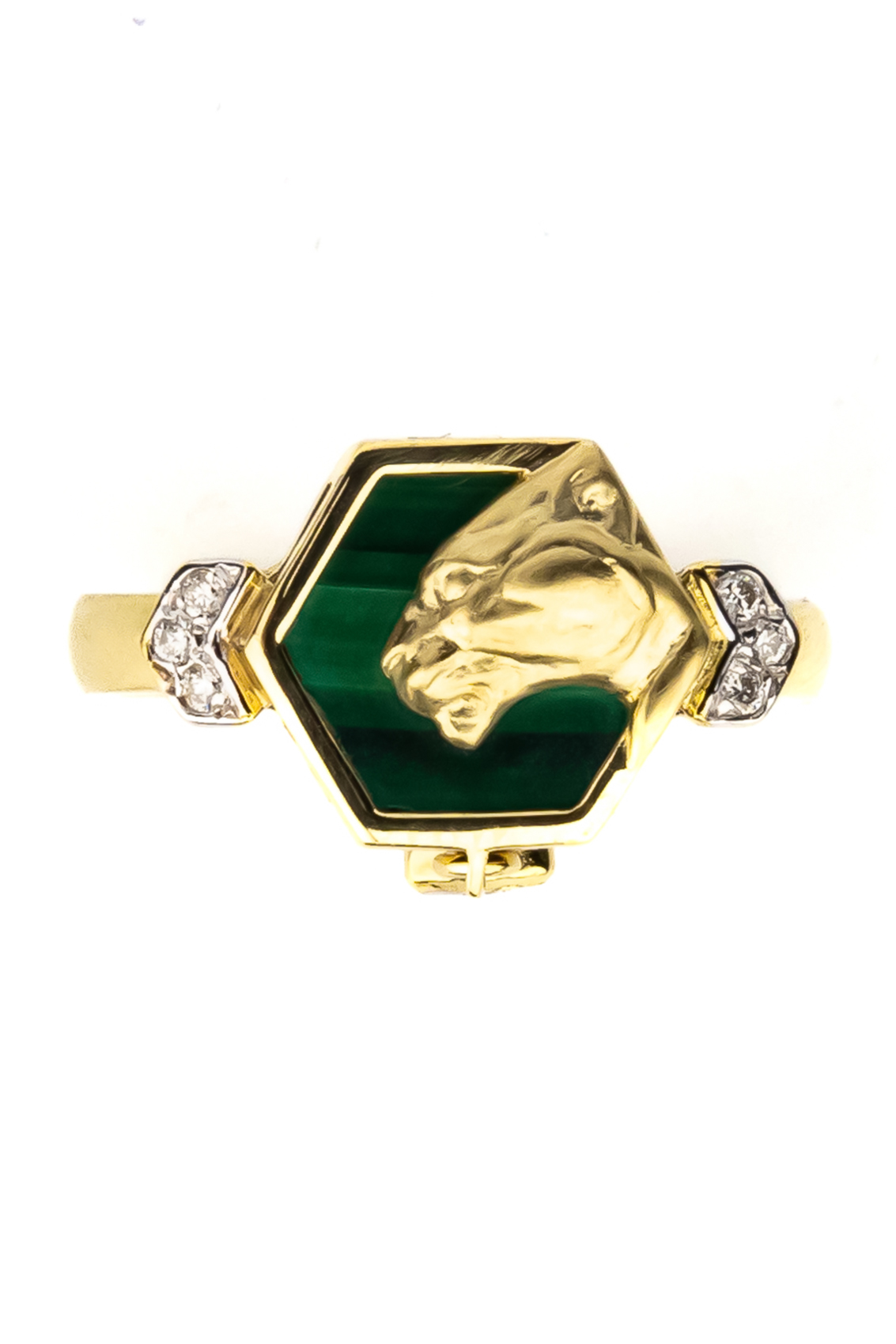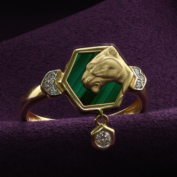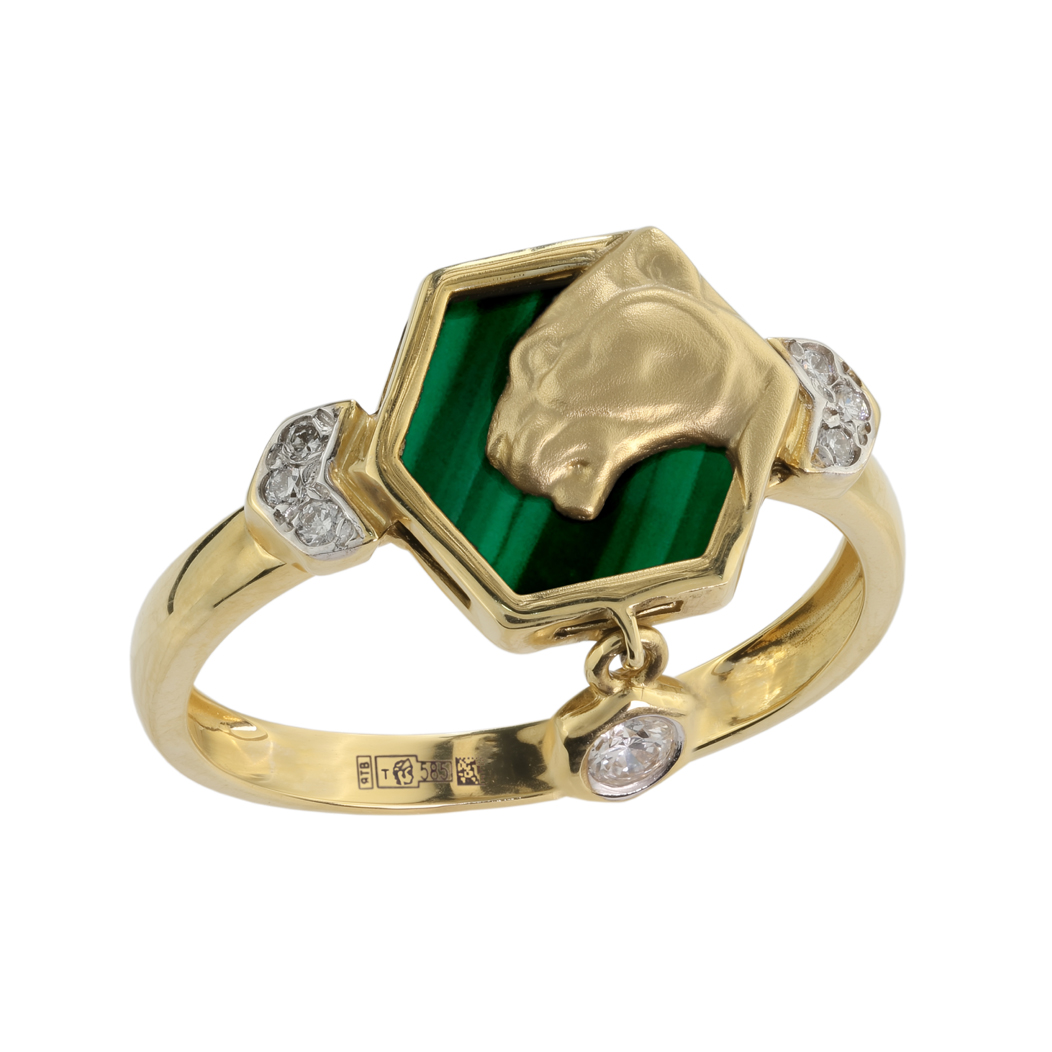 Кольцо из лимонного золота c бриллиантами и малахитом