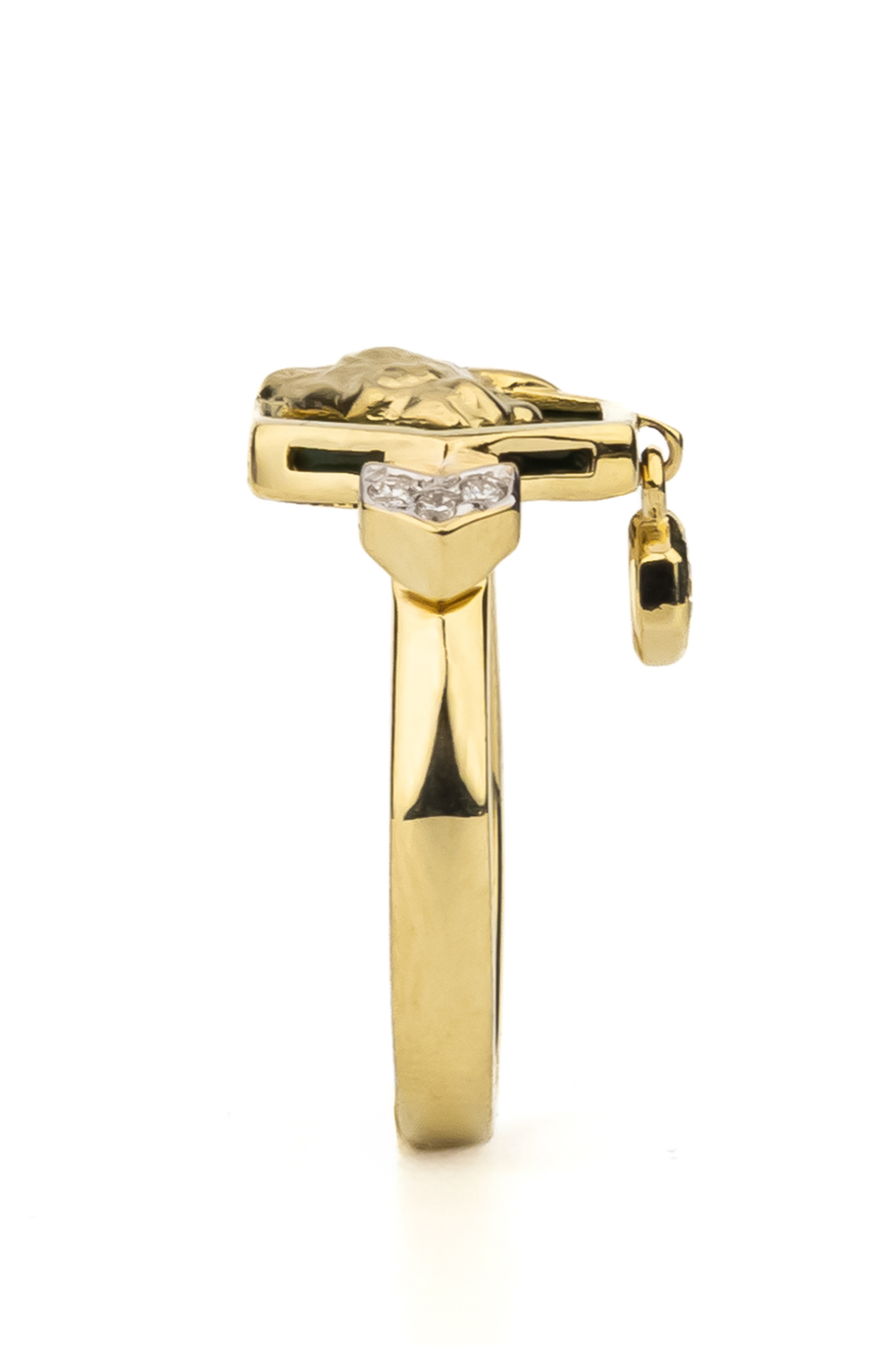 Роскошное кольцо из лимонного золота 585 пробы станет центральным акцентом вашего образа, привлекая восхищенные взгляды своей уникальной эстетикой. Ювелирное изделие из коллекции De Luxe — Гексагон выполнено в выразительном дизайне с образом пантеры — грациозного хищника, который символизирует силу и уверенность. Этот аксессуар подходит как для женщин, так и для мужчин, подчеркивая статус и безупречный вкус своего владельца.
