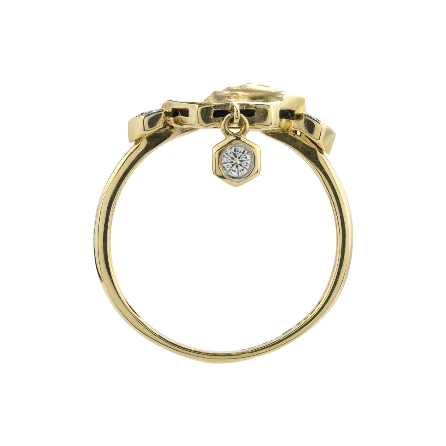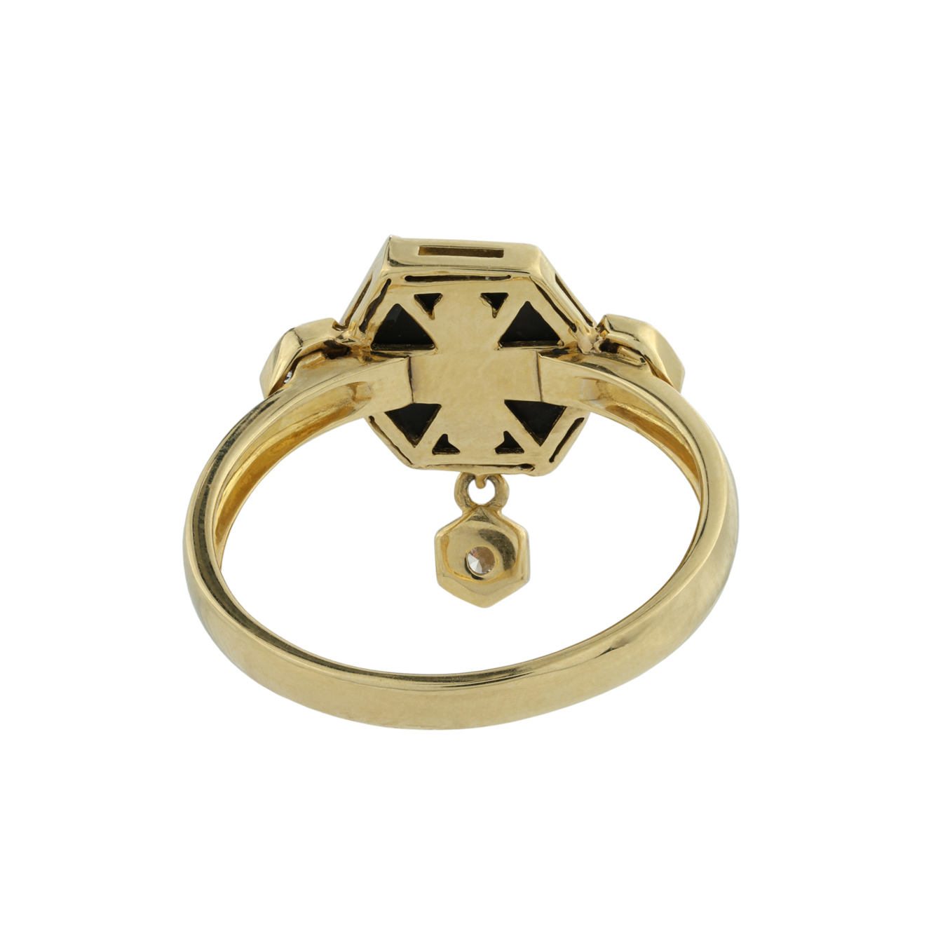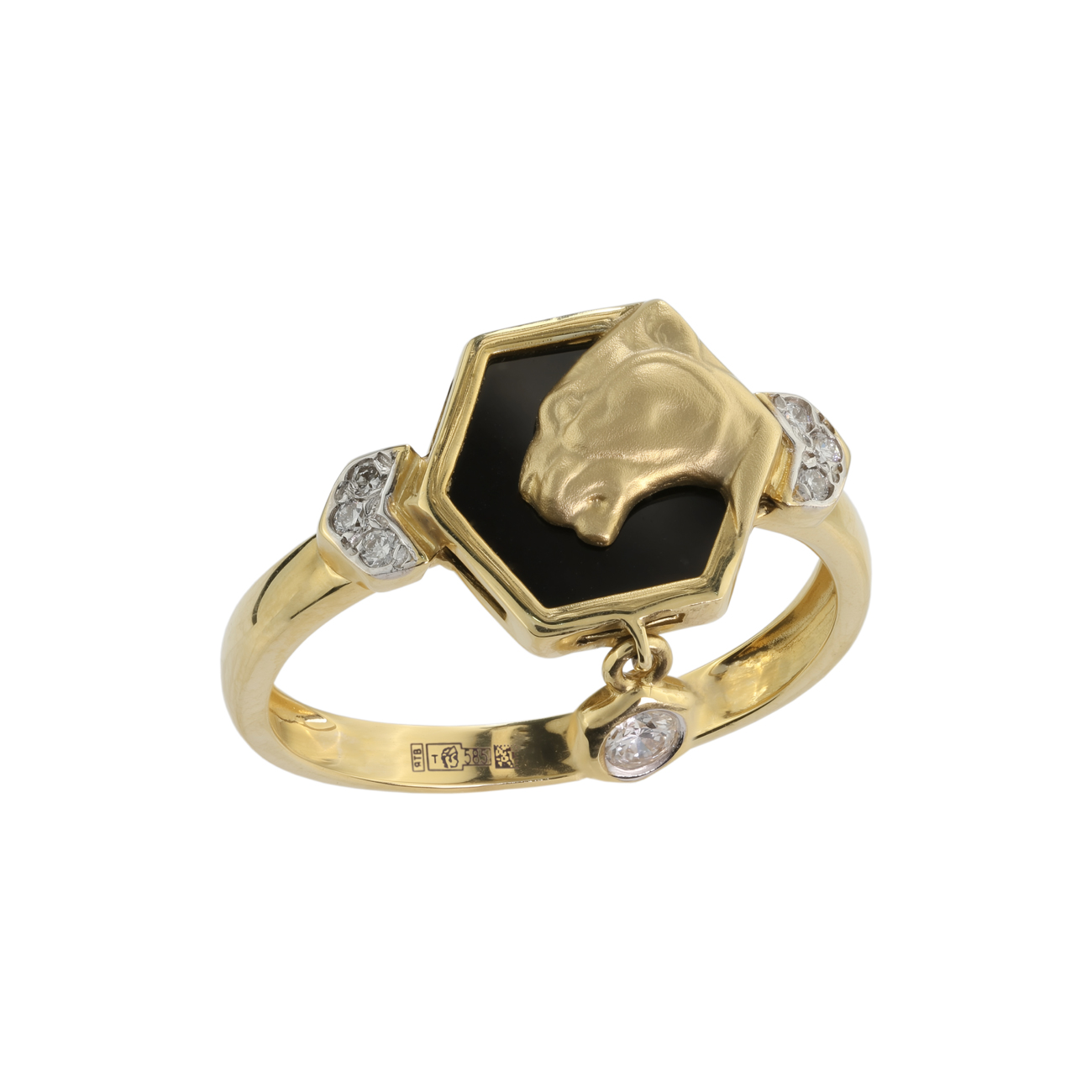 Кольцо из лимонного золота c бриллиантами и ониксом