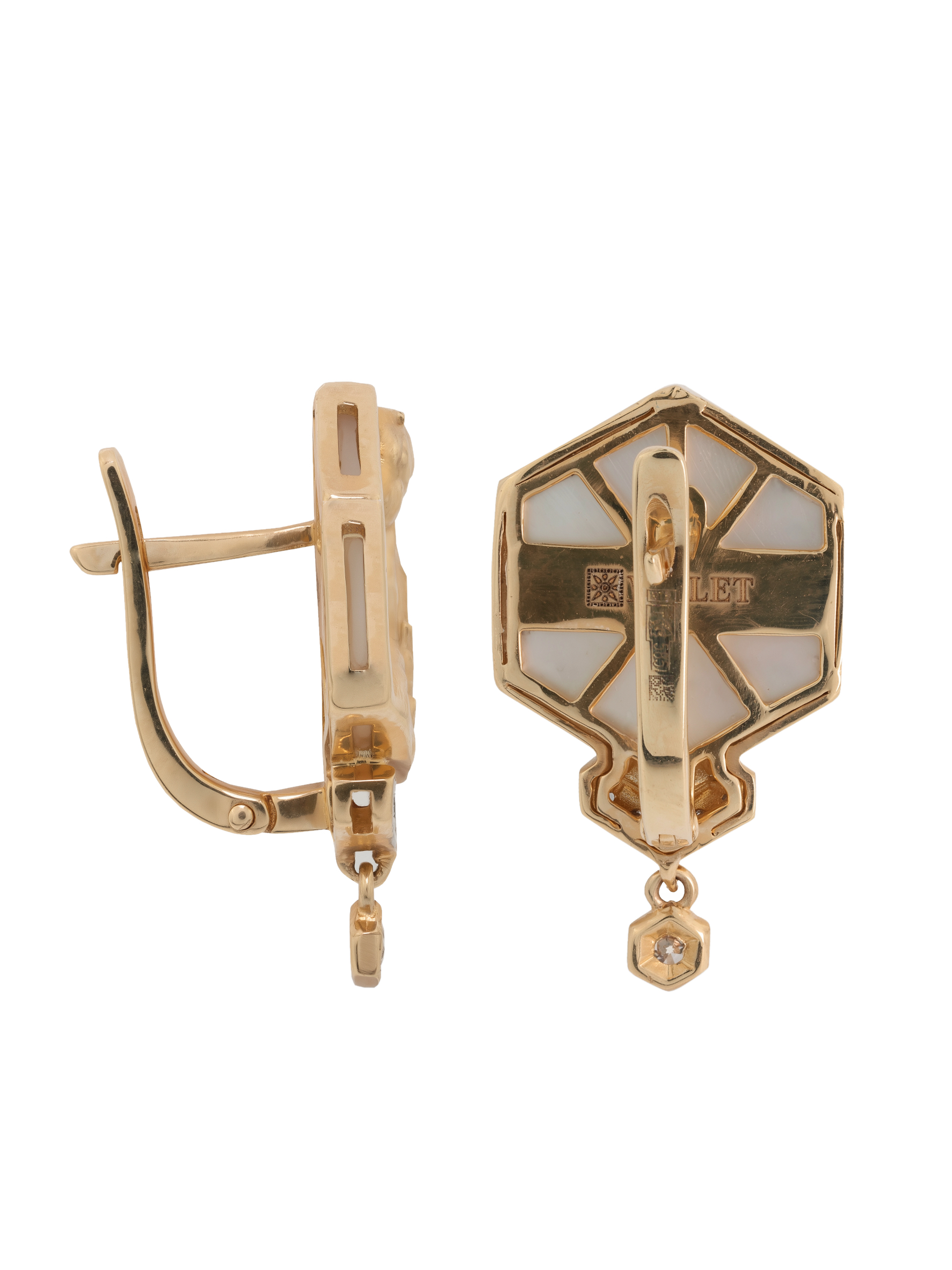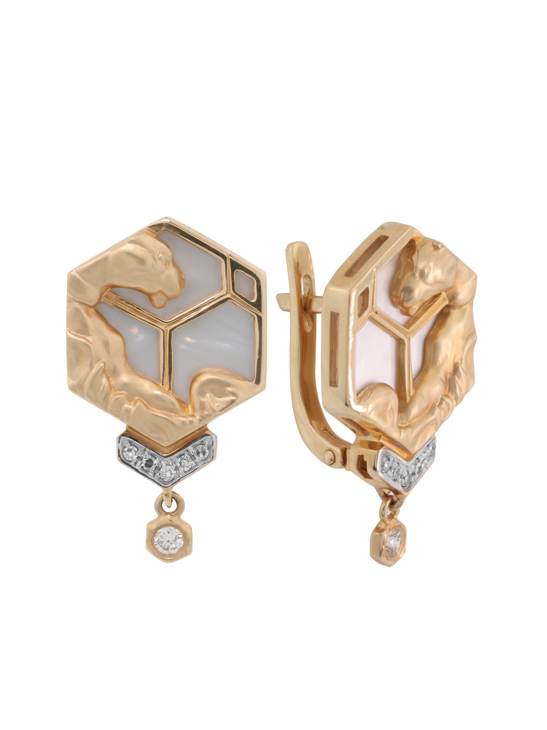 Серьги из золота c бриллиантами и перламутром