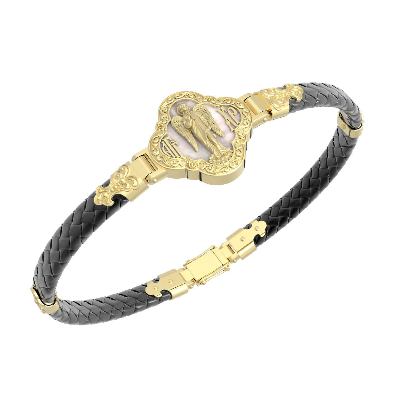 На лицевой стороне основного звена изображён Святой Ангел-Хранитель. Ангел Хранитель — это Ангел приставляемый Богом к человеку при крещении для охраны и помощи в добрых делах. Он невидимо находится при человеке на протяжении всей его жизни, если человек сохраняет в себе любовь к Богу и истинную веру перед Ним. Ангел-Xранитель делают для нас все, что служит к истинному нашему благу и спасению. Невидимо пребывая при нас постоянно, он, руководствуя нас ко спасению, не только по нашему желанию таинственно наставляет нас на все доброе и полезное, не только возносит наши молитвы к Богу, но еще и сам от себя охраняют и защищают нас от врагов видимых и невидимых и ходатайствует за нас пред Богом. Ангел-Хранитель так любит нас, как никто на земле любить не может. Ангел-Хранитель — присный друг наш, незримый тихий собеседник, пресладостный утешитель. Одного лишь каждому из нас он желает — спасения души; к этому он направляет все свои заботы. И если видит нас также заботящимися о спасении, радуется, если же видит нас пребывающими в нерадении о душе своей, скорбит.