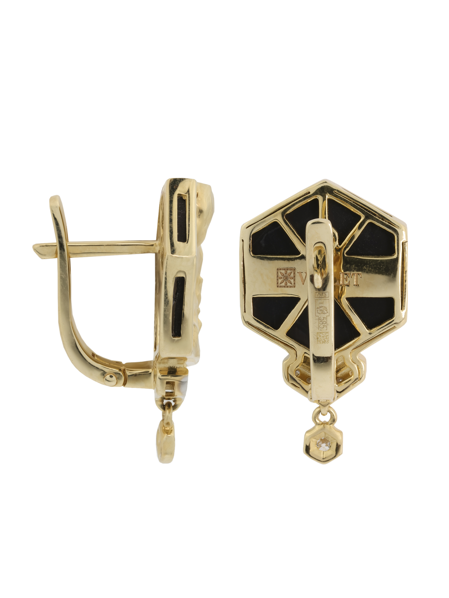Серьги из лимонного золота c бриллиантами и ониксом