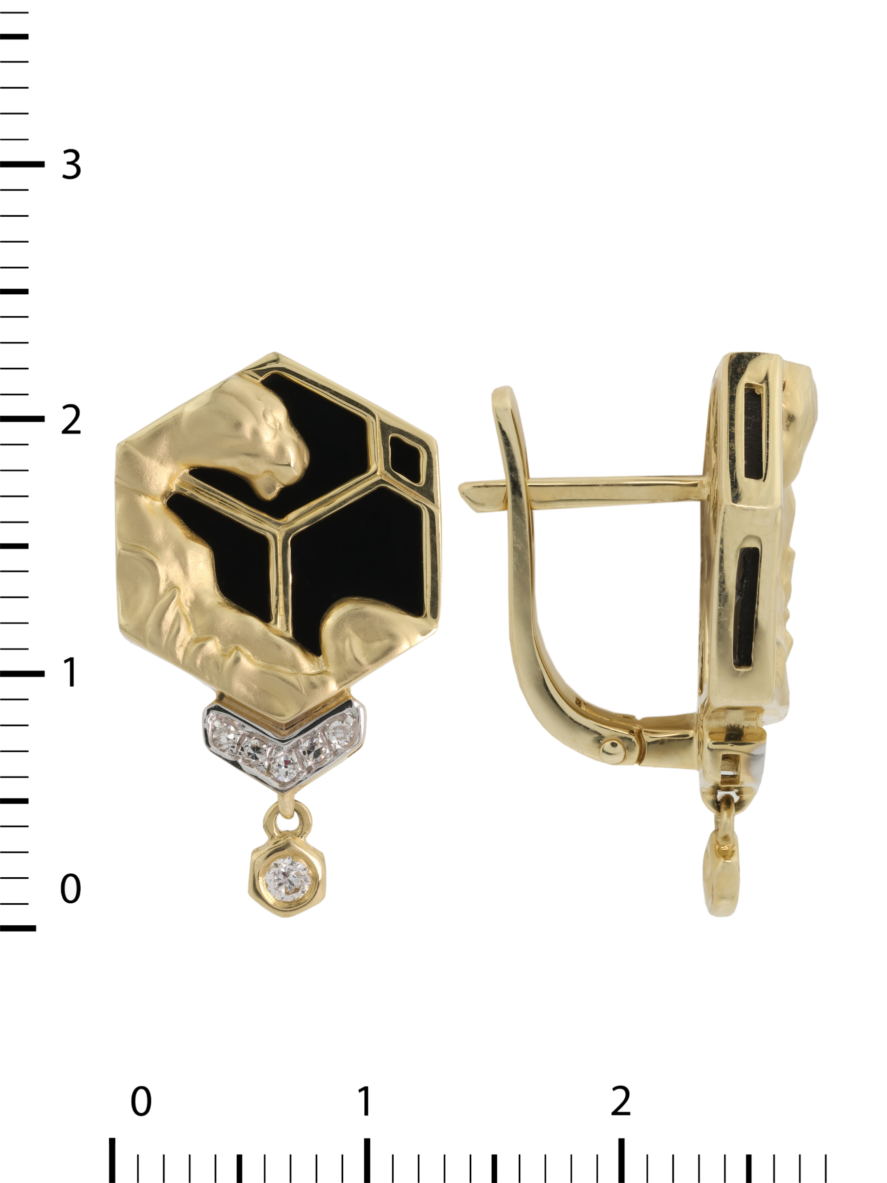 Особую выразительность украшению придают 14 вставок из белых бриллиантов, расположенных в нижней части серег. Искрящиеся круглые камни добавляют аксессуару динамики и роскошного блеска. Дизайн с использованием анималистических мотивов — пантер и пум — делает эти серьги статусным аксессуаром, который подойдет как для женщин, так и для мужчин, ценящих нестандартные решения. Серьги станут ярким акцентом образа и прекрасно гармонируют с другими украшениями, позволяя собрать эффектный комплект. Лаконичная форма и выверенная композиция делают это изделие завершенным произведением ювелирного искусства.