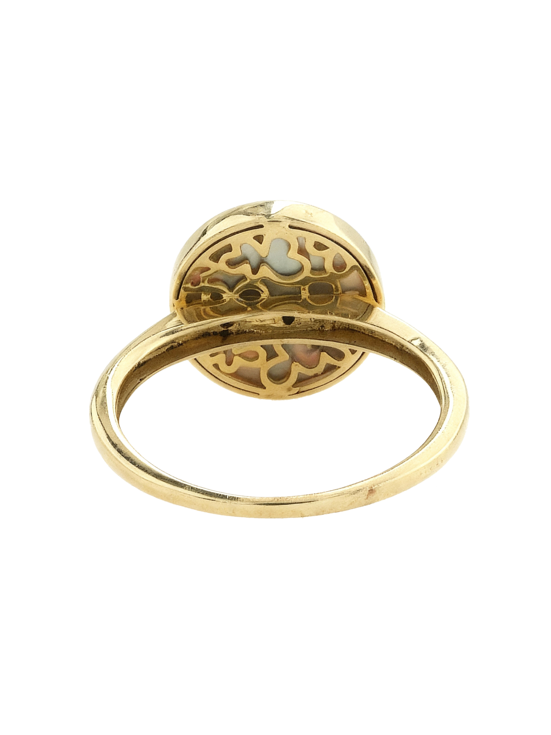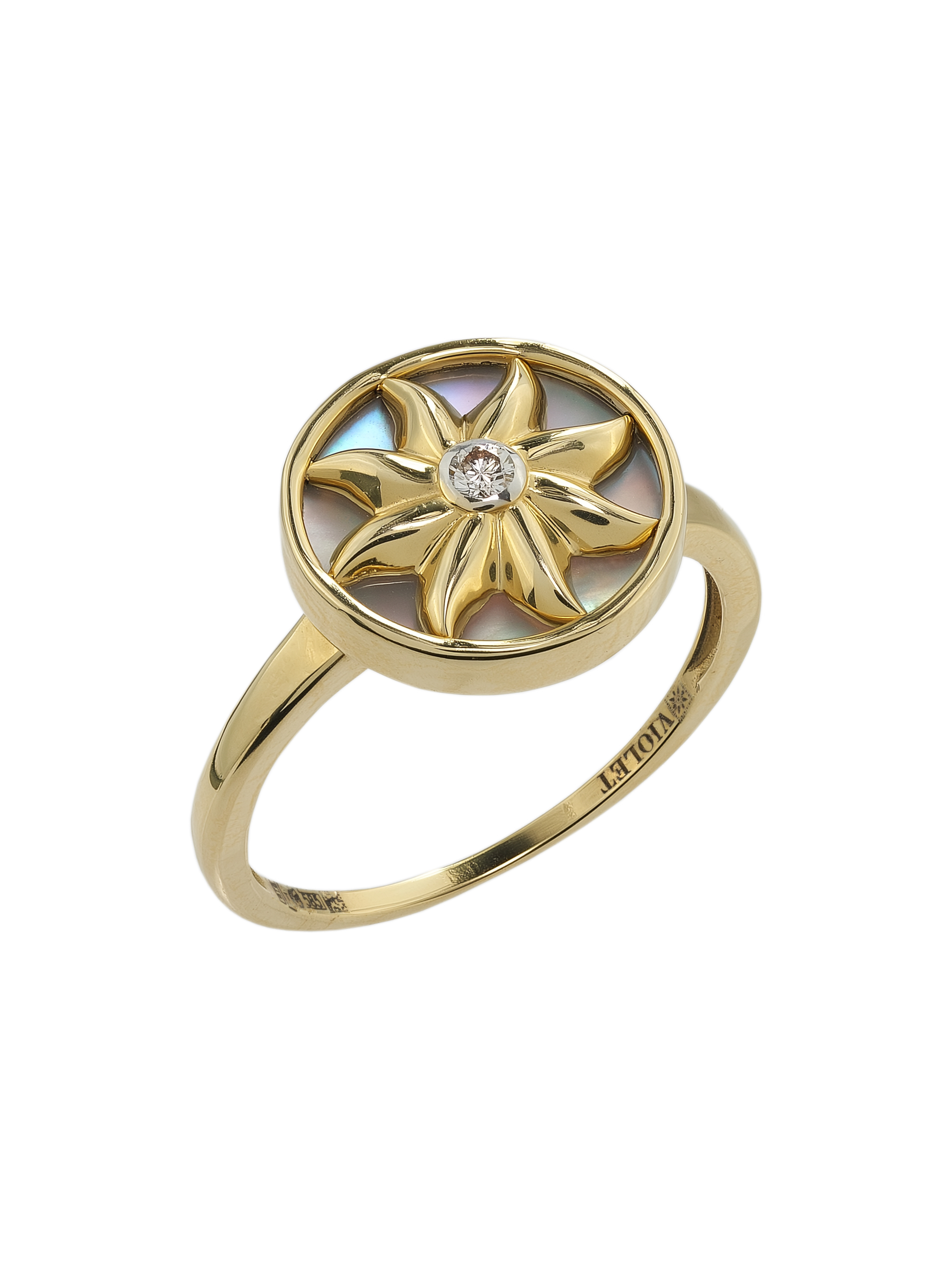 Кольцо из лимонного золота c бриллиантами и перламутром