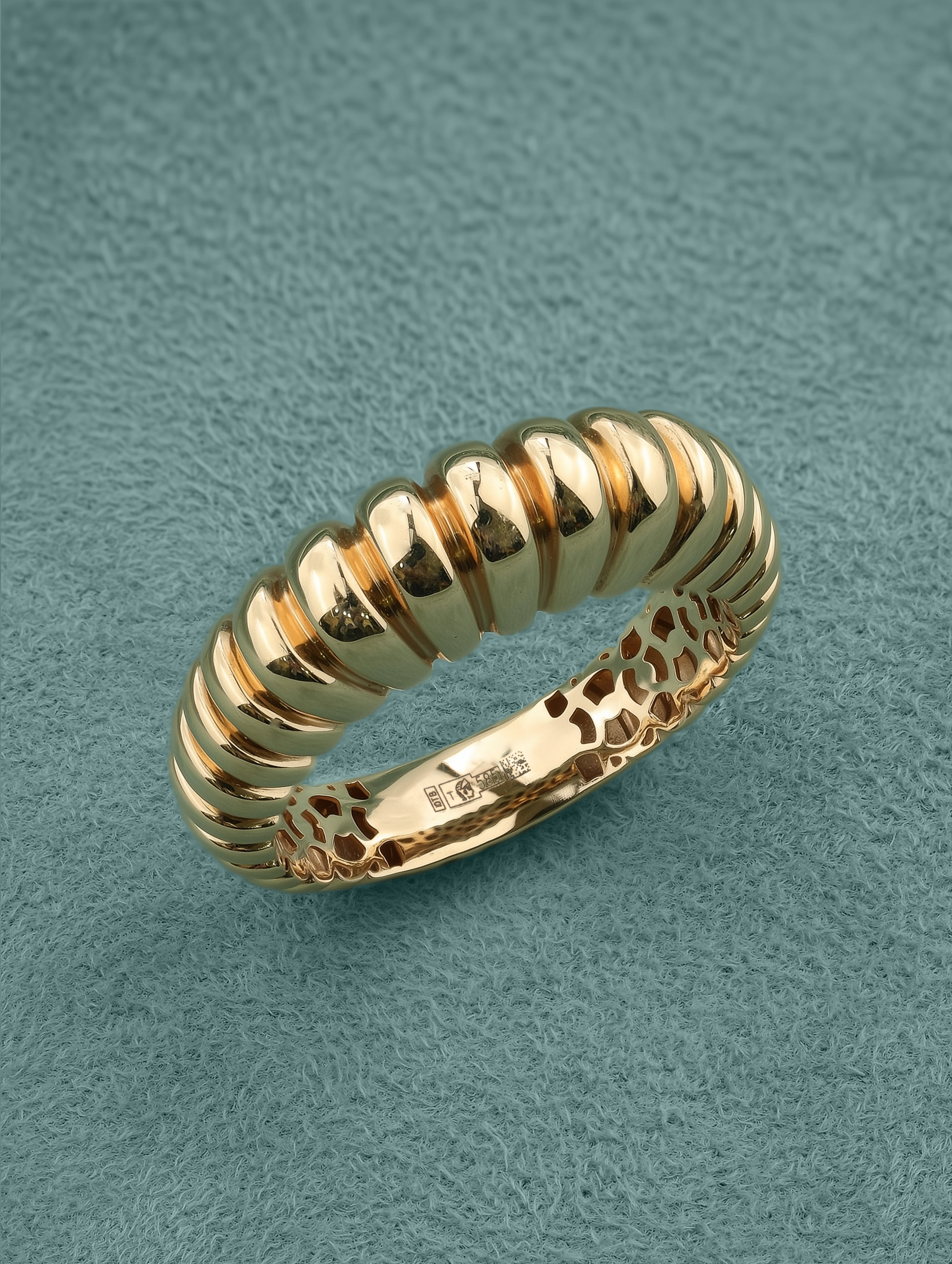 Кольцо из золота — это воплощение современного стиля и уверенности, которое станет ключевым акцентом вашего образа. Изделие выполнено из благородного красного золота 585 пробы, что обеспечивает украшению долговечность и глубокий, теплый оттенок. Дизайн модели отличается оригинальной фактурой в виде рельефных шипов, которая придает украшению дерзкий и выразительный характер.