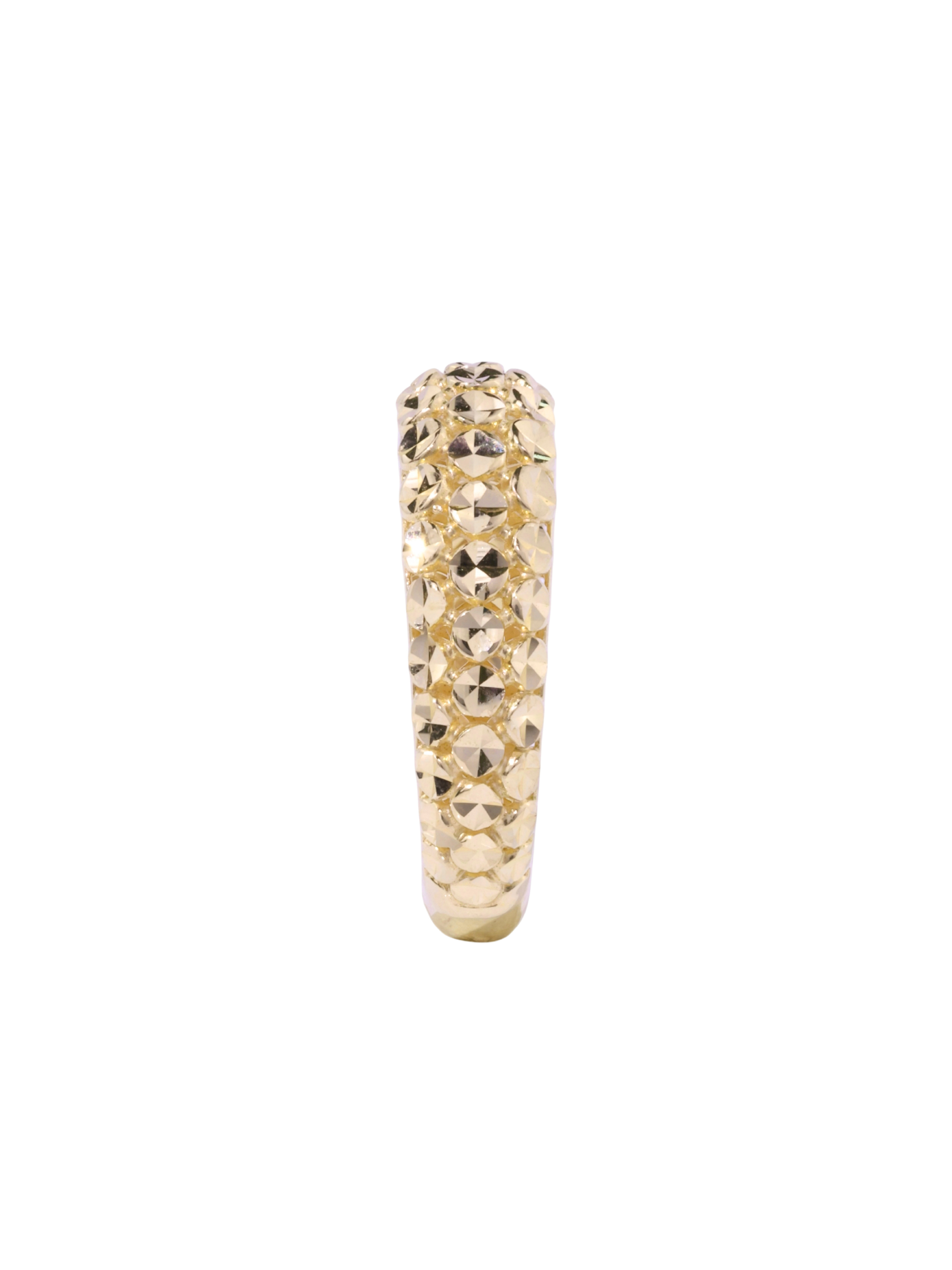 Представляем вашему вниманию кольцо из лимонного золота, созданное для тех, кто ценит эстетику дерзкого минимализма. Данное украшение, вошедшее в Vioretty — Transforme, привлекает внимание своей необычной фактурой: по всему периметру шинки расположены декоративные элементы в виде шипов с алмазной гранью. Изящный перелив лимонного золота 585 пробы создает эффектное мерцание при каждом движении, подчеркивая статус и безупречный вкус владельца.