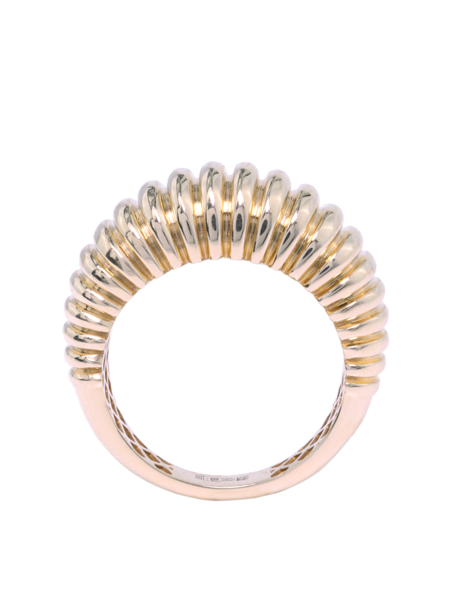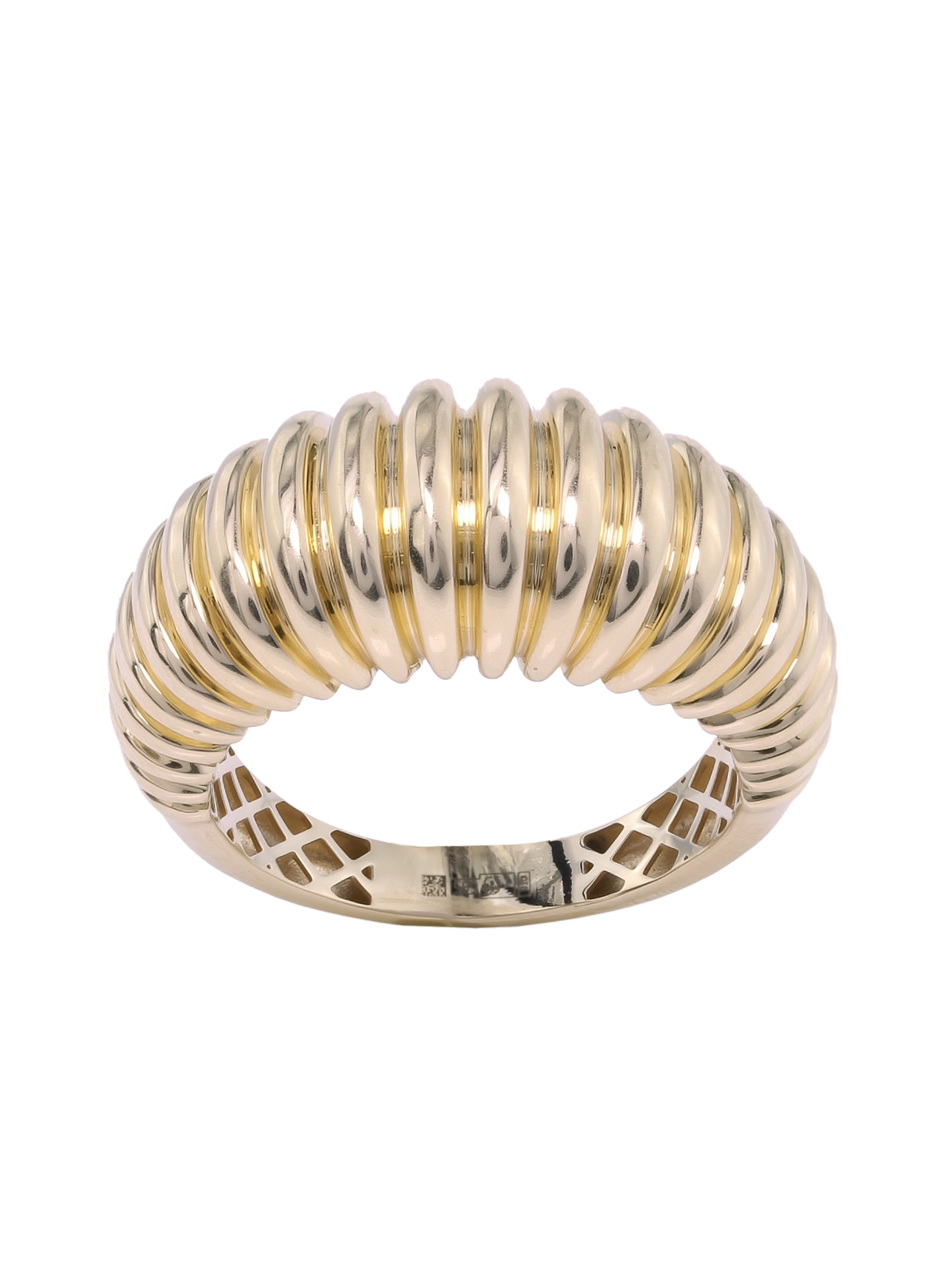 Эффектное кольцо из лимонного золота 585 пробы станет ярким акцентом в вашем образе. Изделие из коллекции Vioretty — Transforme привлекает внимание своим необычным дизайном: объемная поверхность украшена четкими линиями, напоминающими шипы, которые создают интересную игру света и тени. Лимонный оттенок золота придает украшению благородный и современный вид, выделяя его среди классических моделей. Это ювелирное изделие выполнено с вниманием к деталям и отличается безупречным качеством исполнения.