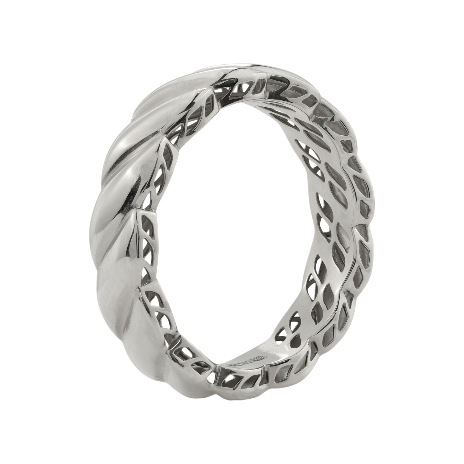 Благородный холодный оттенок белого золота подчеркивает лаконичность форм, обеспечивая изделию безупречный внешний вид. Это кольцо гармонично смотрится как самостоятельный аксессуар, так и в составе комплекта, позволяя комбинировать его с другими украшениями. Благодаря продуманному дизайну и качественному исполнению, данное изделие станет достойным пополнением вашей ювелирной коллекции.