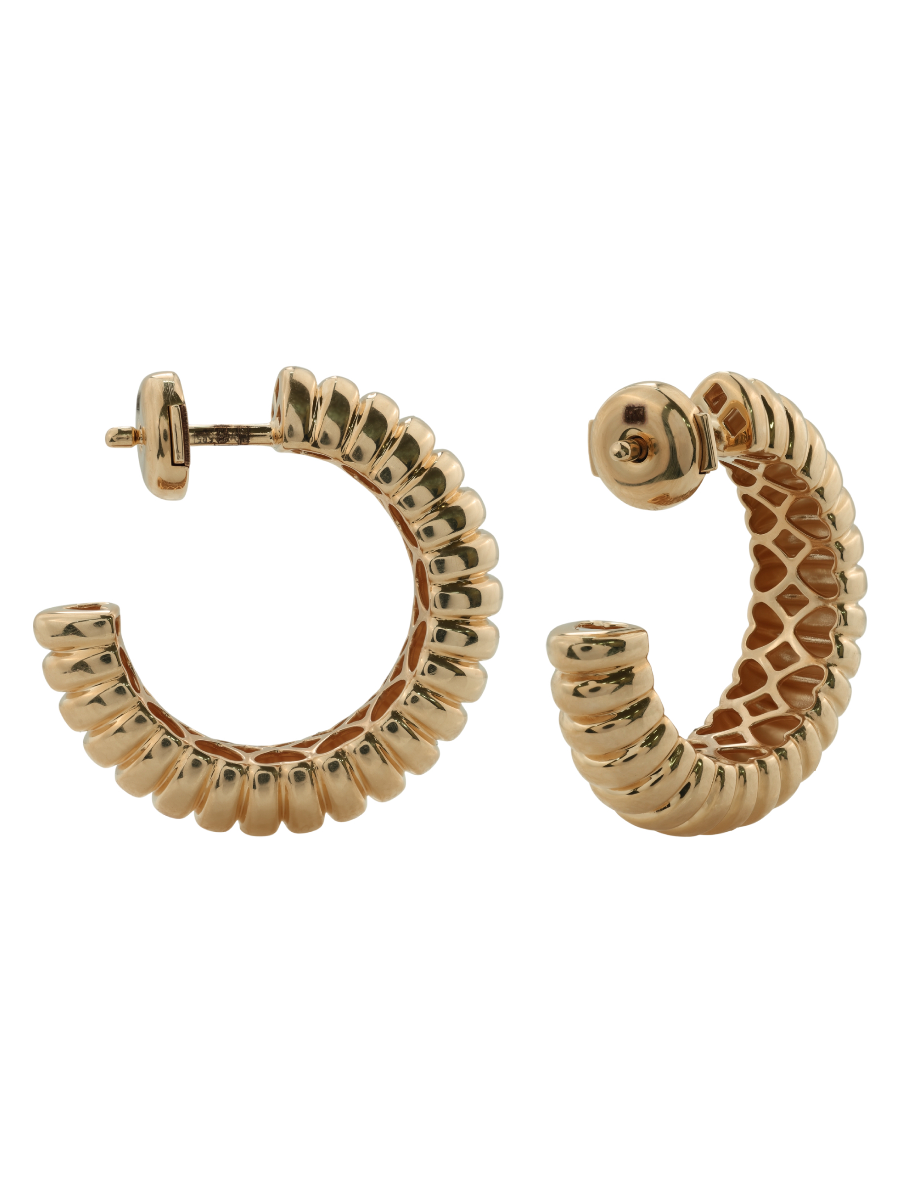 Данная модель отличается уникальной фактурой, сочетающей строгие линии и объем. Красное золото в сочетании с необычным дизайном создает динамичный образ, который притягивает взгляд. Благодаря своей универсальности, эти серьги подходят как для женщин, так и для мужчин, подчеркивая индивидуальность и уверенность в себе. Лаконичная форма делает их прекрасным дополнением к повседневному образу или акцентом для вечернего выхода.