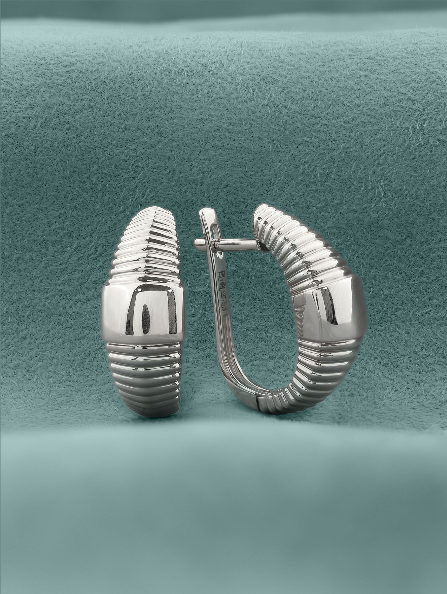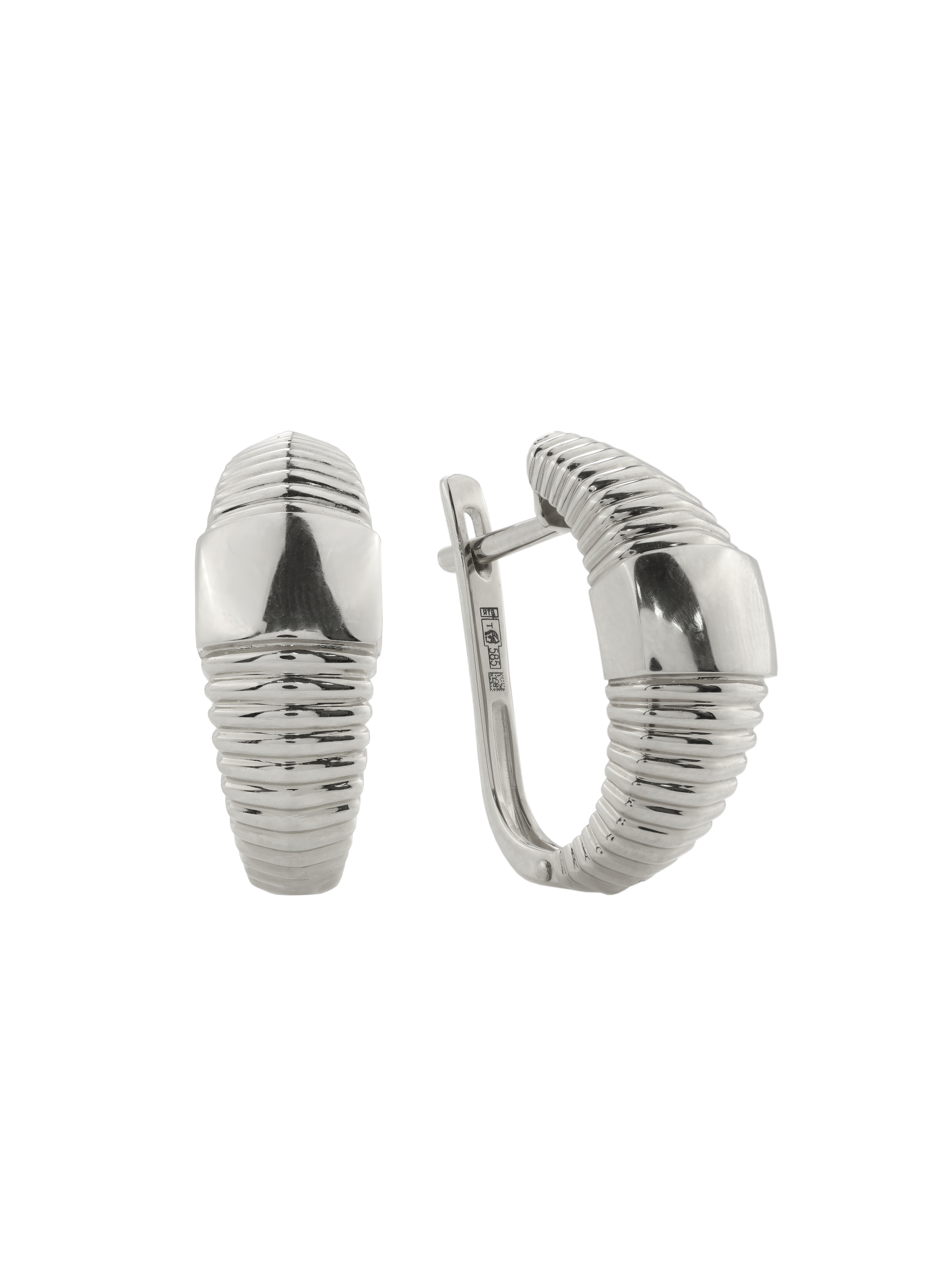 Благородный блеск белого золота подчеркивает архитектурную форму изделия, создавая игру света на гладких поверхностях. Надежный замок обеспечивает комфортную посадку и уверенность при ношении. Эти серьги — не просто аксессуар, а значимая деталь, способная собрать целостный комплект при сочетании с другими ювелирными украшениями из этой же серии. Выбирая данное украшение, вы делаете ставку на актуальную геометрию и высокое качество исполнения, которые остаются востребованными вне времени. Серьги подчеркнут вашу харизму и станут удачным подарком для ценителей минималистичных, но запоминающихся ювелирных решений.