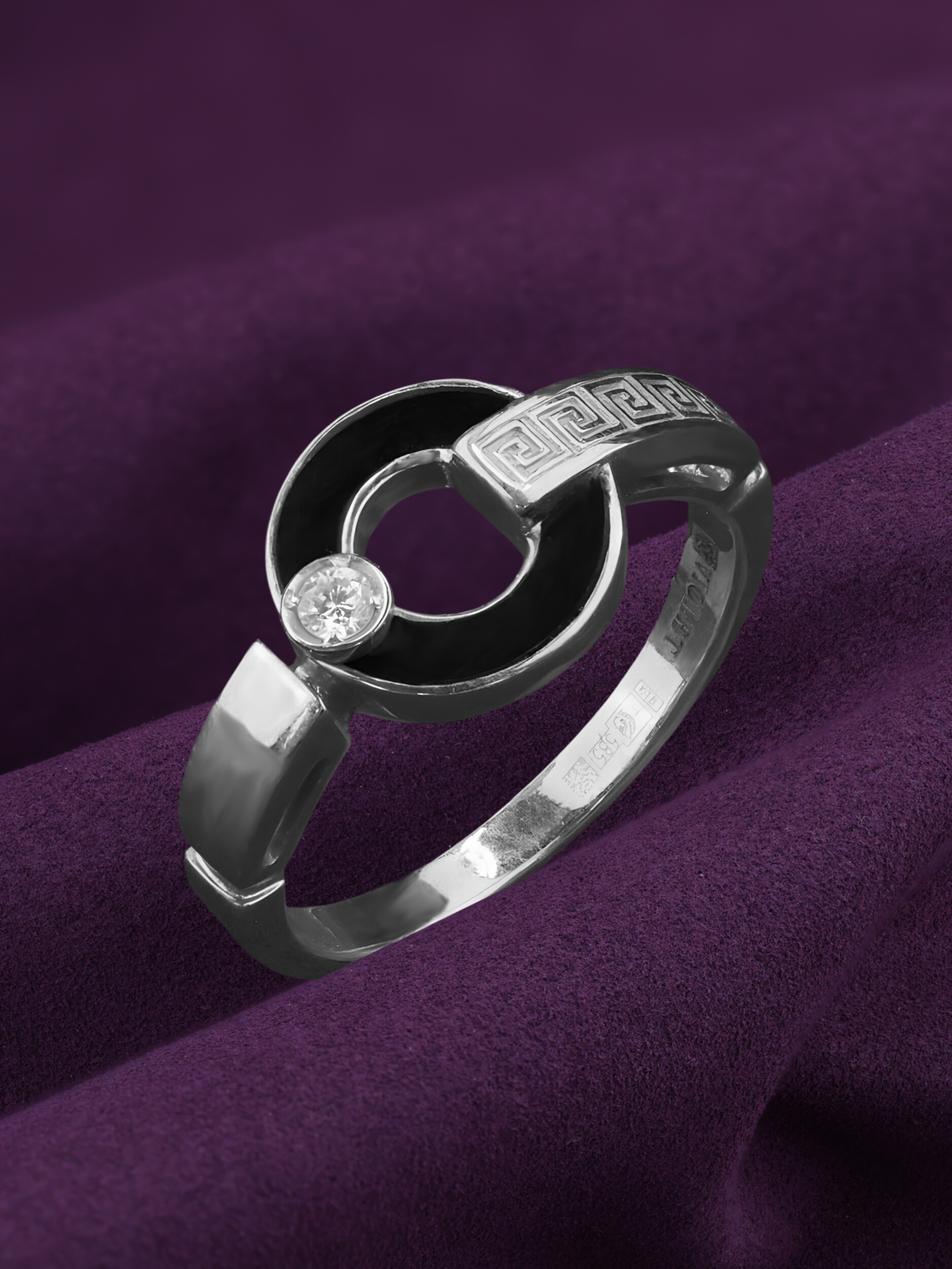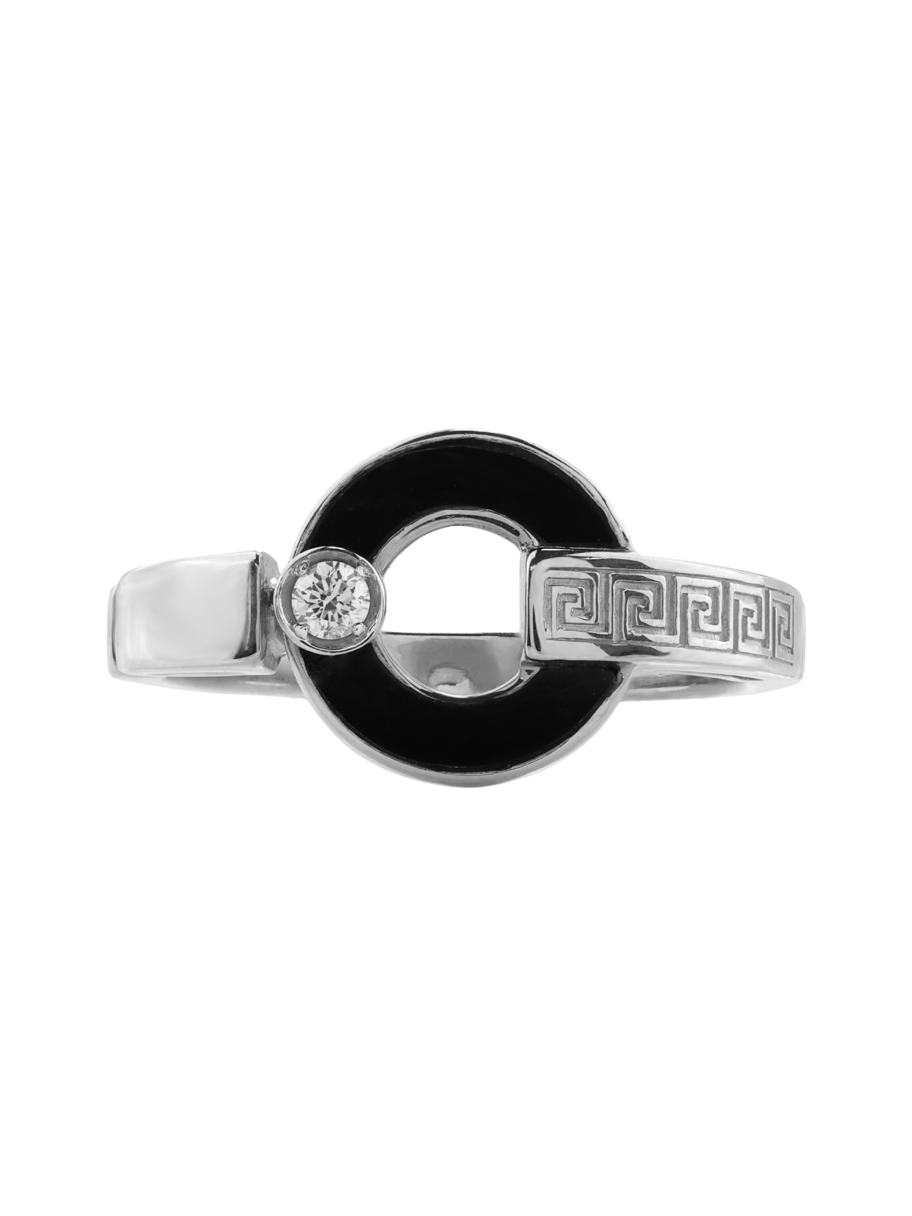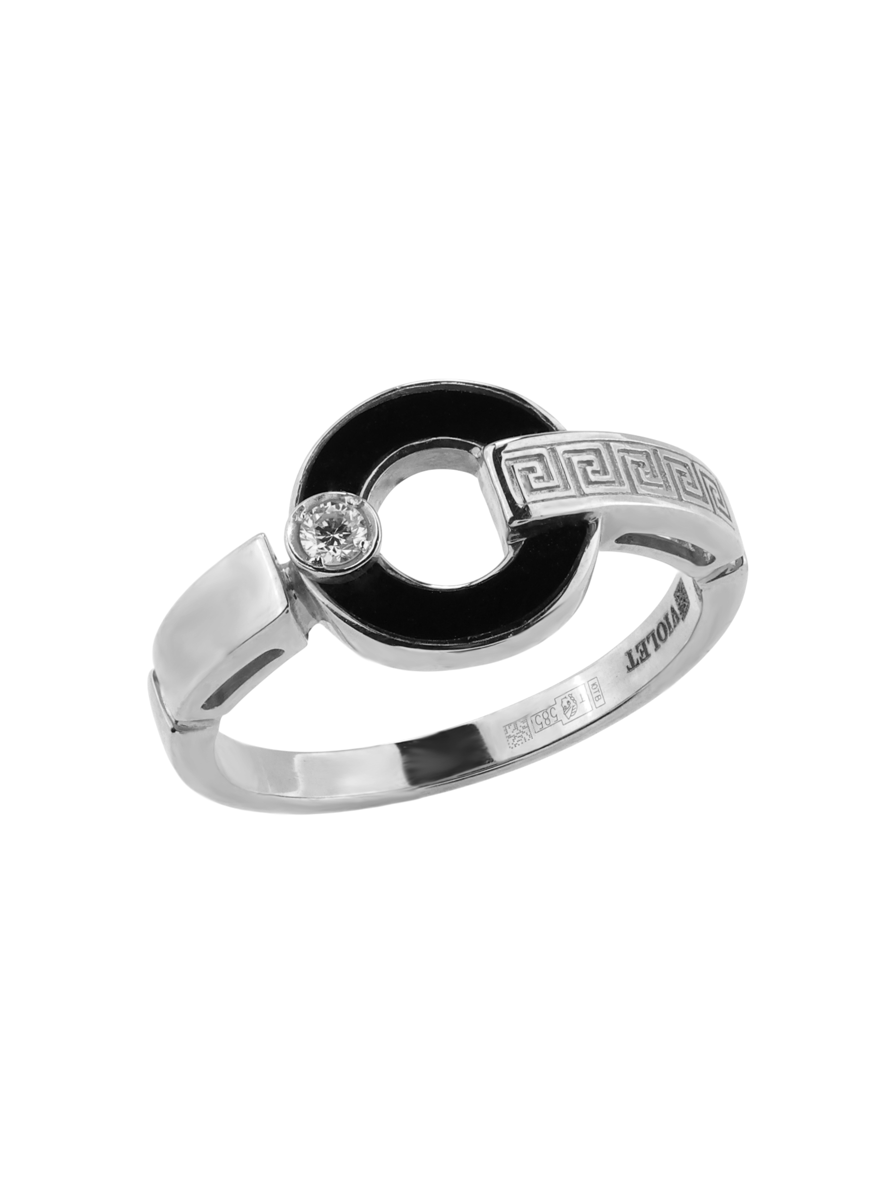 Элегантное кольцо из белого золота 585 пробы из коллекции De Luxe — Афина станет идеальным дополнением вашего образа. Дизайн изделия сочетает в себе классику и современные акценты: поверхность украшена узнаваемым орнаментом «греческий ключ» и необычным элементом в форме полумесяца. Глубокий черный цвет оникса эффектно контрастирует с холодным блеском белого металла, создавая выразительную игру оттенков.
