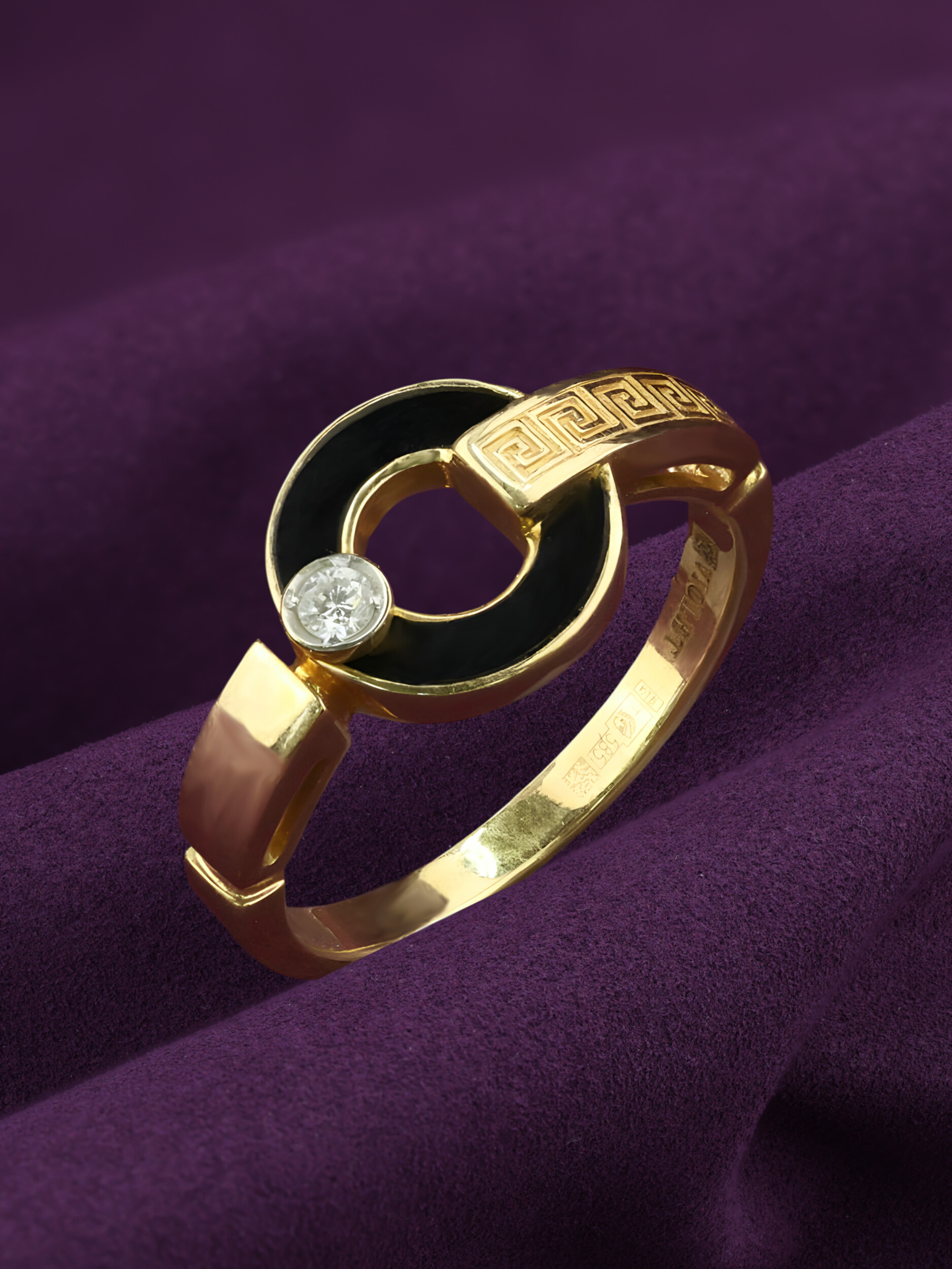 Лимонное золото — уникальный материал, который в сочетании с черным ониксом и белым бриллиантом создает стильный и дорогой контраст. Это универсальное ювелирное изделие подходит как для женщин, так и для мужчин, подчеркивая индивидуальность и утонченный вкус владельца. Кольцо выполнено в лаконичной манере, благодаря чему оно отлично сочетается с другими украшениями и может стать частью полноценного комплекта.