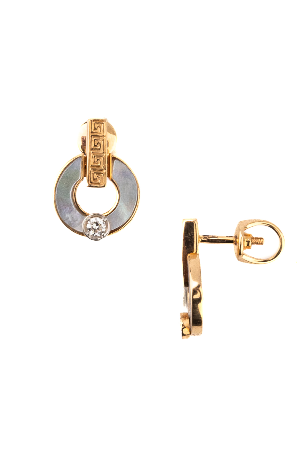 Серьги из золота c бриллиантами и перламутром