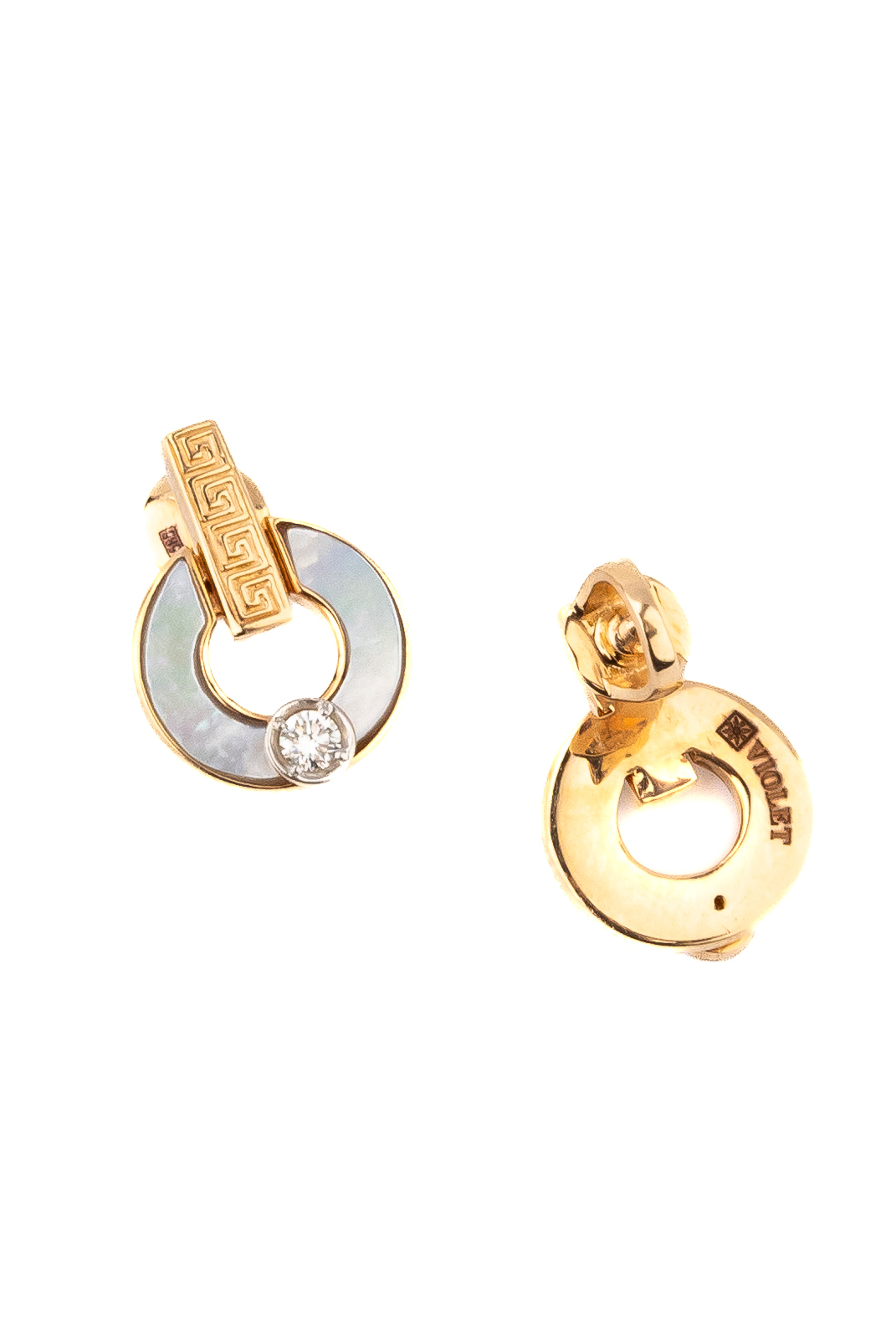 Центральным акцентом композиции выступает изысканная вставка из перламутра, чей мягкий перелив дополнен сияющим бриллиантом круглой огранки белого цвета. Лаконичное сочетание красного золота, нежного перламутра и классического бриллианта делает эти серьги универсальным украшением для женщин. Изделие также отлично вписывается в современные тренды унисекс-украшений, подходя для мужчин, ценящих сдержанный люкс. Всего в модели использованы 2 вставки, которые создают сбалансированный и притягательный визуальный эффект.