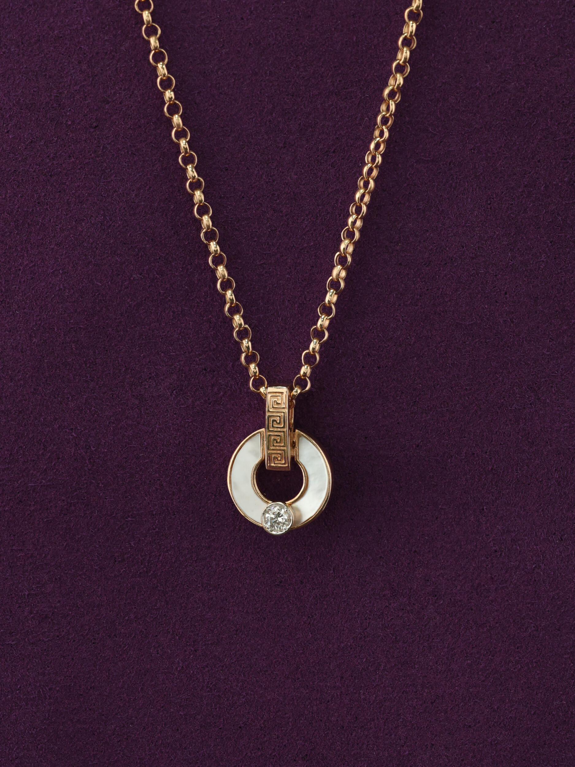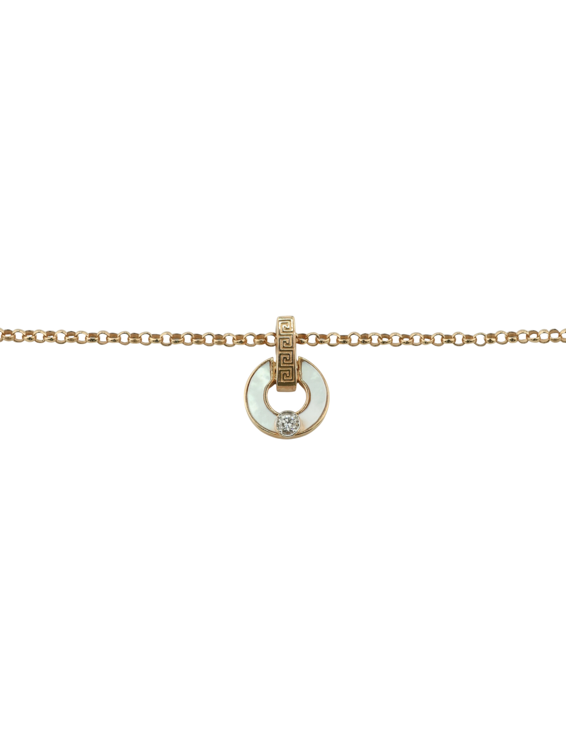 Изысканное колье из коллекции De Luxe — Афина станет воплощением утонченного вкуса и символом статуса. Украшение выполнено из благородного красного золота 585 пробы, что обеспечивает изделию долговечность и благородный теплый блеск. Центральным элементом дизайна выступает изящная подвеска в форме полумесяца, гармонично дополненная классическим греческим ключом — орнаментом, который придает колье нотки античной эстетики и вневременной элегантности.